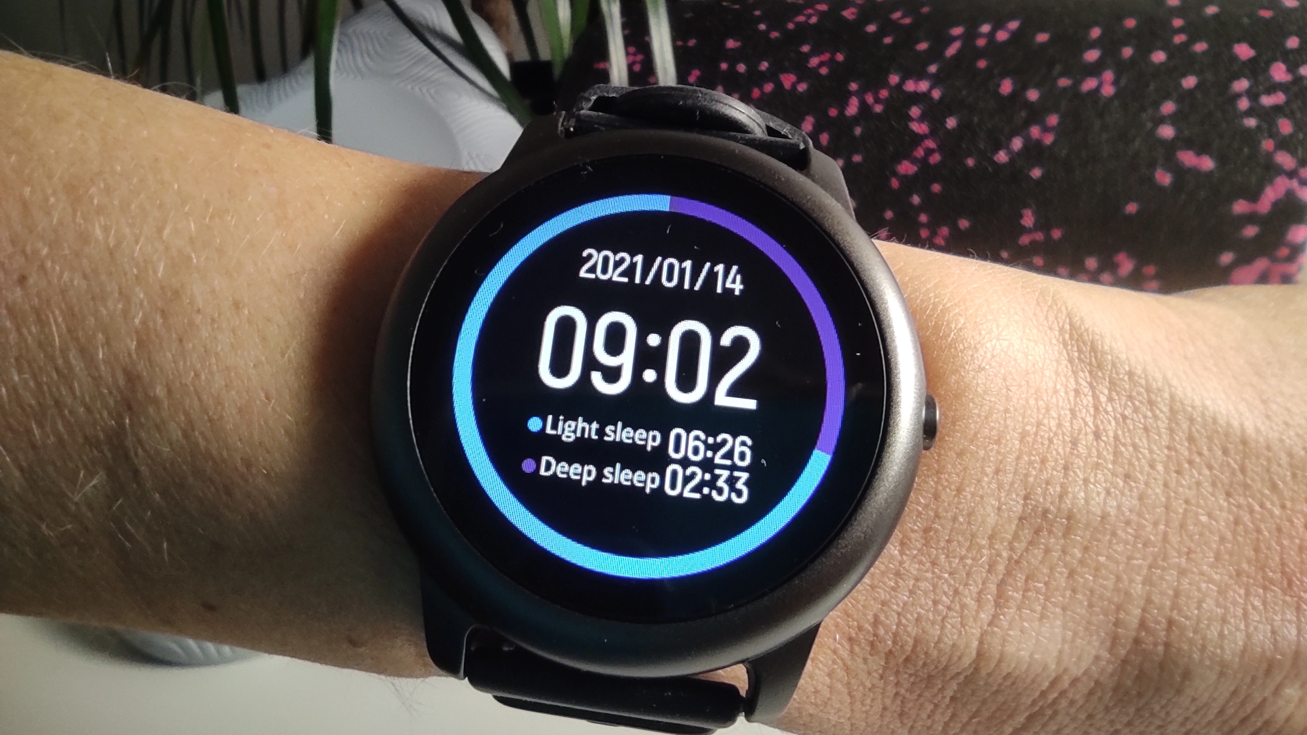 Die Haylou Solar LS05 bietet die Möglichkeit sich seine Schlafzeiten anzeigen zu lassen. Angezeigt werden im Schnellstartmenü der Watch neben der Gesamtdauer auch die Aufteilung nach Tief- und Leichtschlafphase. Hier ist mir beim Testen aufgefallen, dass die Solar LS05 sowohl die Einschlafphase mit trackt sodass bei mir immer zwischen 25-40 Minuten mehr Schlafzeit angezeigt wurde als es tatsächlich waren.