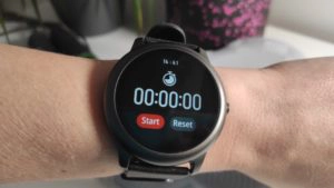 Die Haylou Solar LS05 bietet eine Stoppuhr-Funktion an. Gestartet und gestoppt werden kann die Funktion entweder über den Start/Stopp Button im Display oder die Funktionstaste. Mit dem Reset-Button im Display kann man die Uhr Stoppuhr zurücksetzen. Leider kann man weder die Ergebnisse nicht speichern noch ist es möglich mehrere Zeitmessungen gleichzeitig durchzuführen.