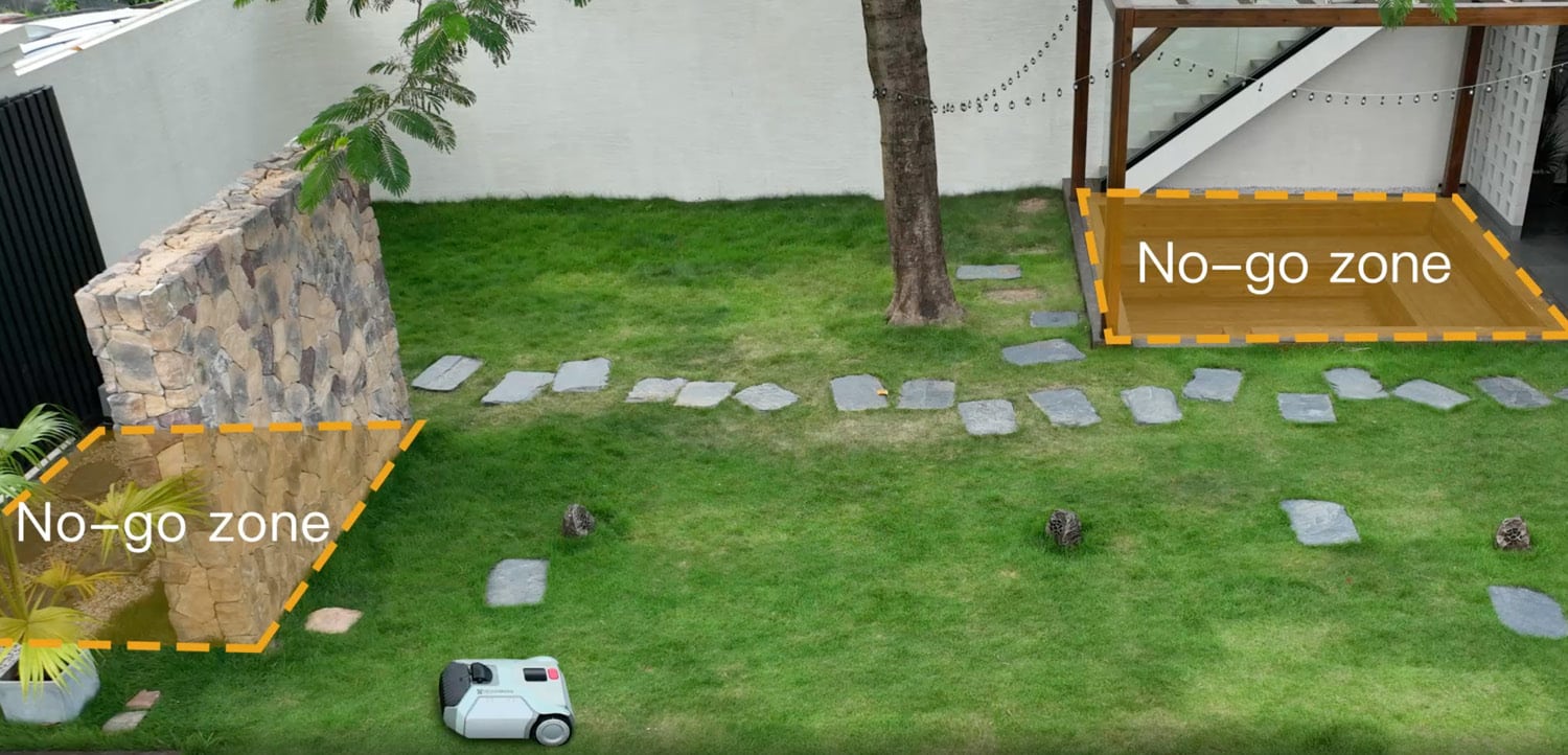 Durch gleich drei verbaute KI-Kameras, kann der LawnMeister ohne Begrenzungsdraht auskommen. Ebenso kann er mehrere abgegrenzte Bereiche befahren, Hindernissen wie Objekten und Tieren aus dem Weg gehen und sogar Sperrzonen beachten.