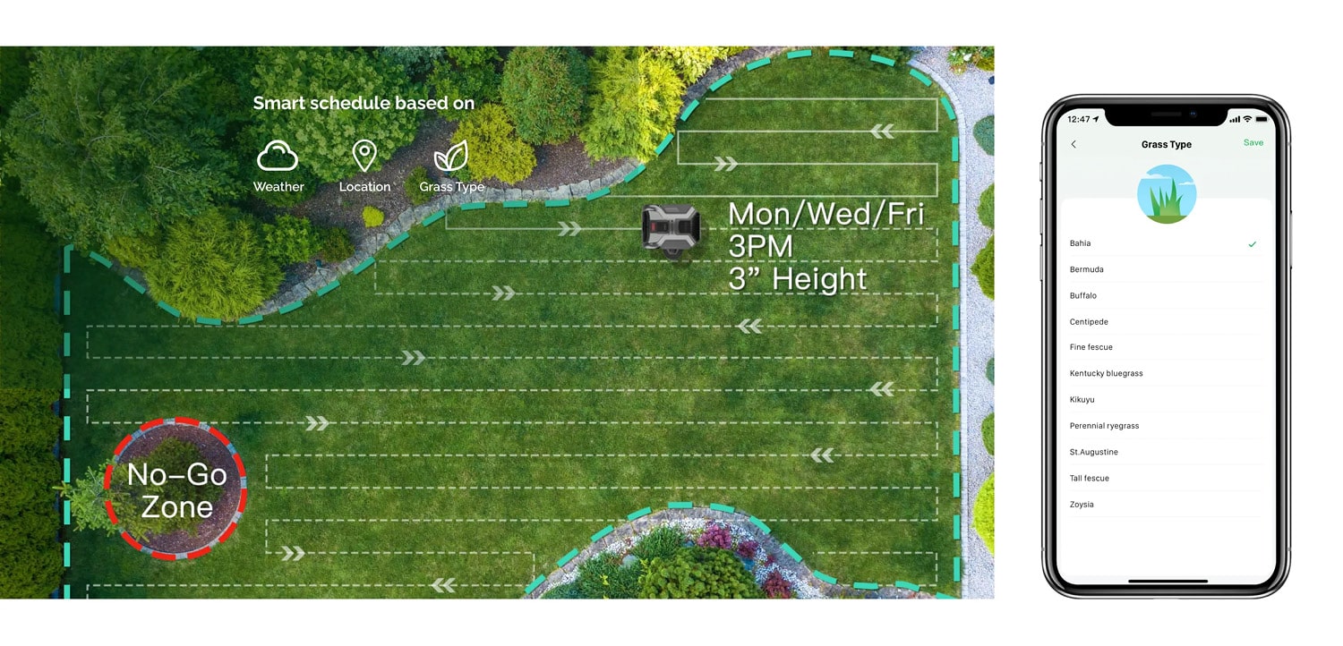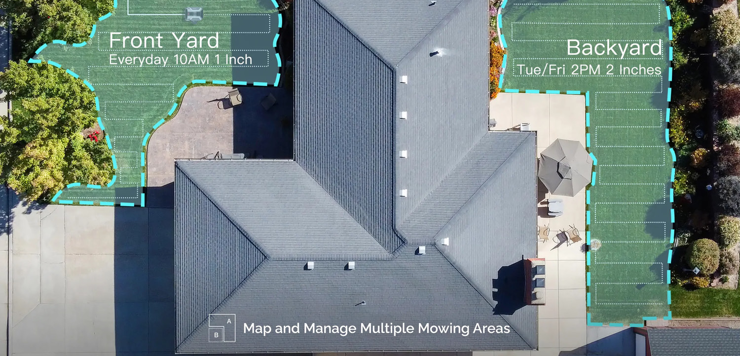 Verbaut wurde ein Real Time Kinematic-System, dass zusammen mit den Kameras diese Art der Navigation ermöglichen. Nachdem er den Rasen vermessen hat, gibt er eine Karte dessen in der Smartphone-App wieder. Mit dieser Karte kannst du interagieren und verschiedene Zonen einrichten.