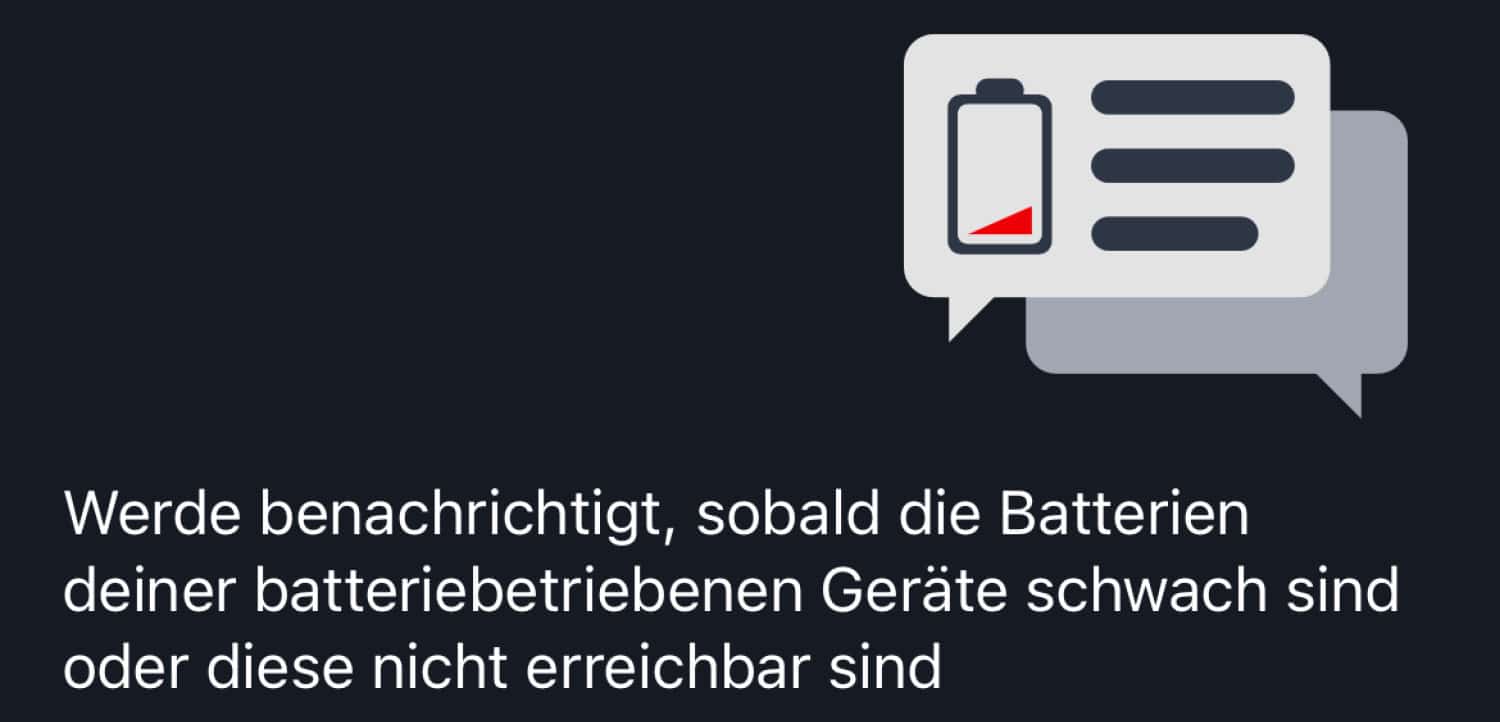 Eine andere Neuerung ist der Batterie Melder. Dieser Service prüft jetzt ausgewählte, mit Batterien betriebene Geräte täglich auf Batteriezustand. Sobald diese zu schwach werden, informiert dich die App mittels Push-Benachrichtigung darüber, dass sie ausgetauscht werden sollten.