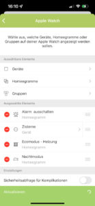 In dieser Ansicht kannst du auswählen, welche Geräte, Homeegramme (Automatisierungen) oder Gruppen auf deiner Apple Watch angezeigt werden sollen.