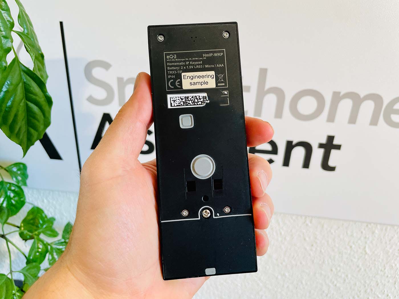 Das Keypad von Homematic IP verfügt über einen Näherungssensor, welcher bei Dunkelheit die Beleuchtung der Tasten einschaltet. Die Stromversorgung läuft über zwei AAA-Batterien, welches für bis zu zwei Jahre ausreichen sollen.