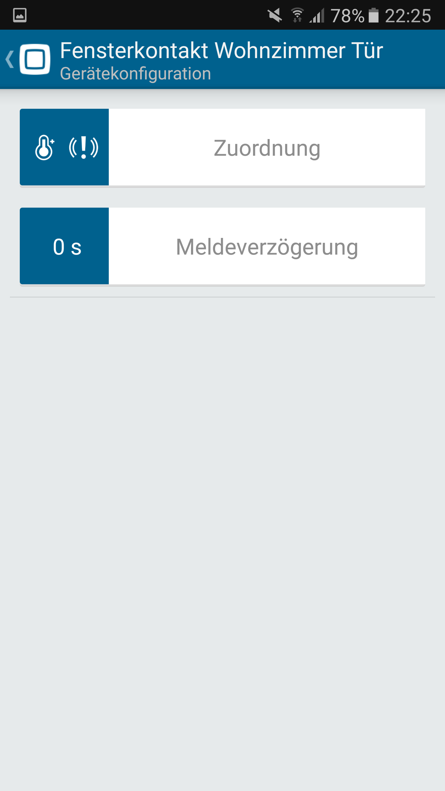 Auf dem 2. Screenshot seht ihr noch die Einstellungen, die ihr vornehmen könnt, wenn ihr den Homematic IP Fenster- und Türkontakt anwählt. In der „Zuordnung“ könnt ihr ihn für die Heizungssteuerung und/oder den Alarm zuordnen und in der Meldeverzögerung gebt ihr an, ab wann eine Aktion nach auslösen des Sensors starten soll.