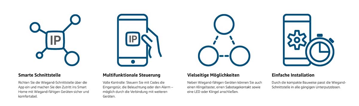 Das Unternehmen eQ-3 hat eine Homematic IP Wiegand-Schnittstelle in sein Sortiment aufgenommen. Mit diesem können Wiegand-fähige Code-Schlösser, Fingerprintsensoren und auch Karten-/Transponderlesegeräte in ein Homematic IP System integriert werden.