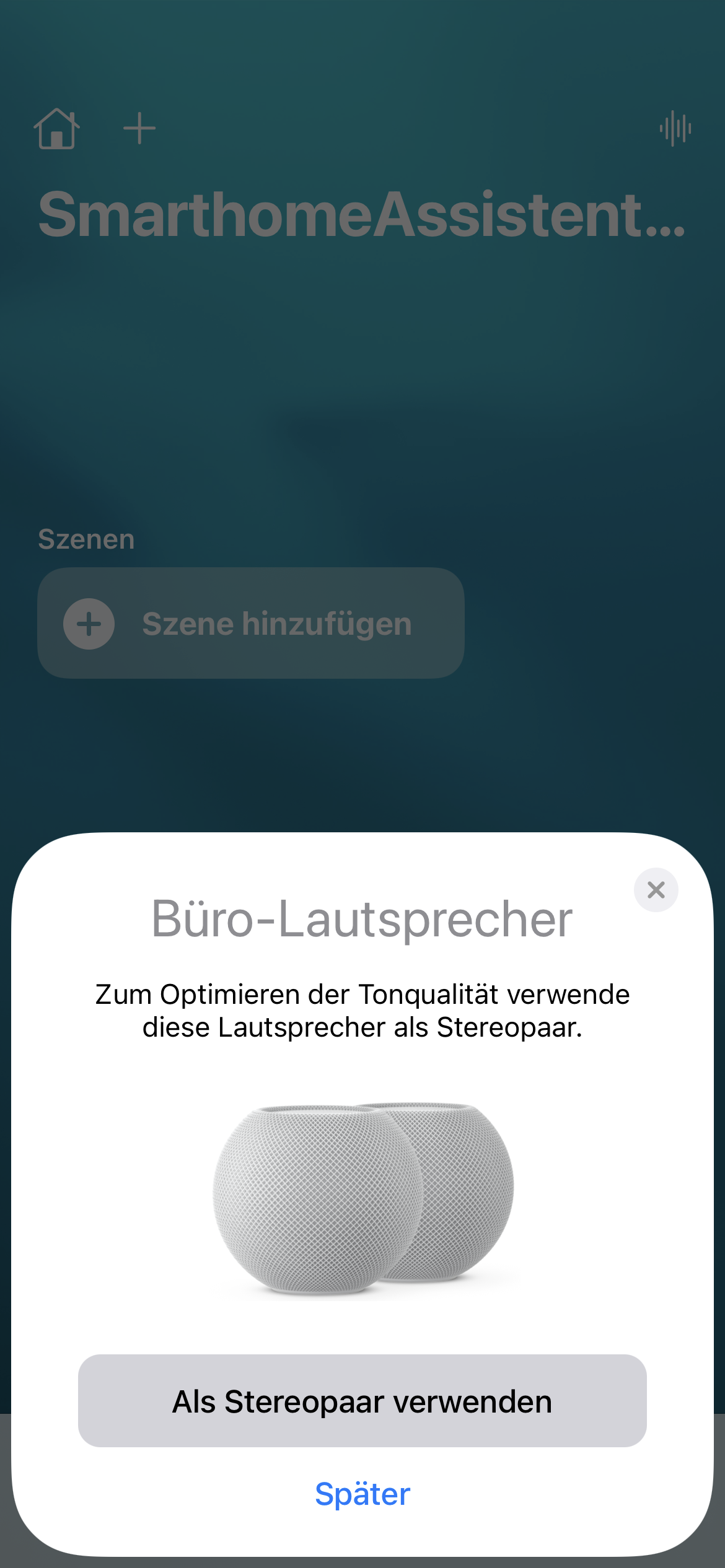 - Die Option wird beim Hinzufügen des 2. HomePod minis direkt angezeigt