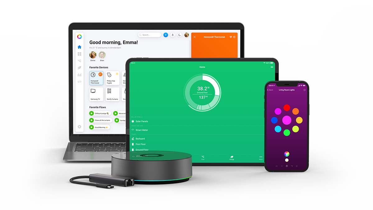 Das neue Homey Pro verfügt jetzt über acht Smarthome-Technologien. Diese sind Wi-Fi (2,4 GHz und auch 5 GHz), Bluetooth Low Energy, Zigbee, Z-Wave Plus, 433 MHz, Infrarot, Matter und Thread. Es kommt mit der Homey-Softwareplattform, Schnittstellen und Homey-Apps.
