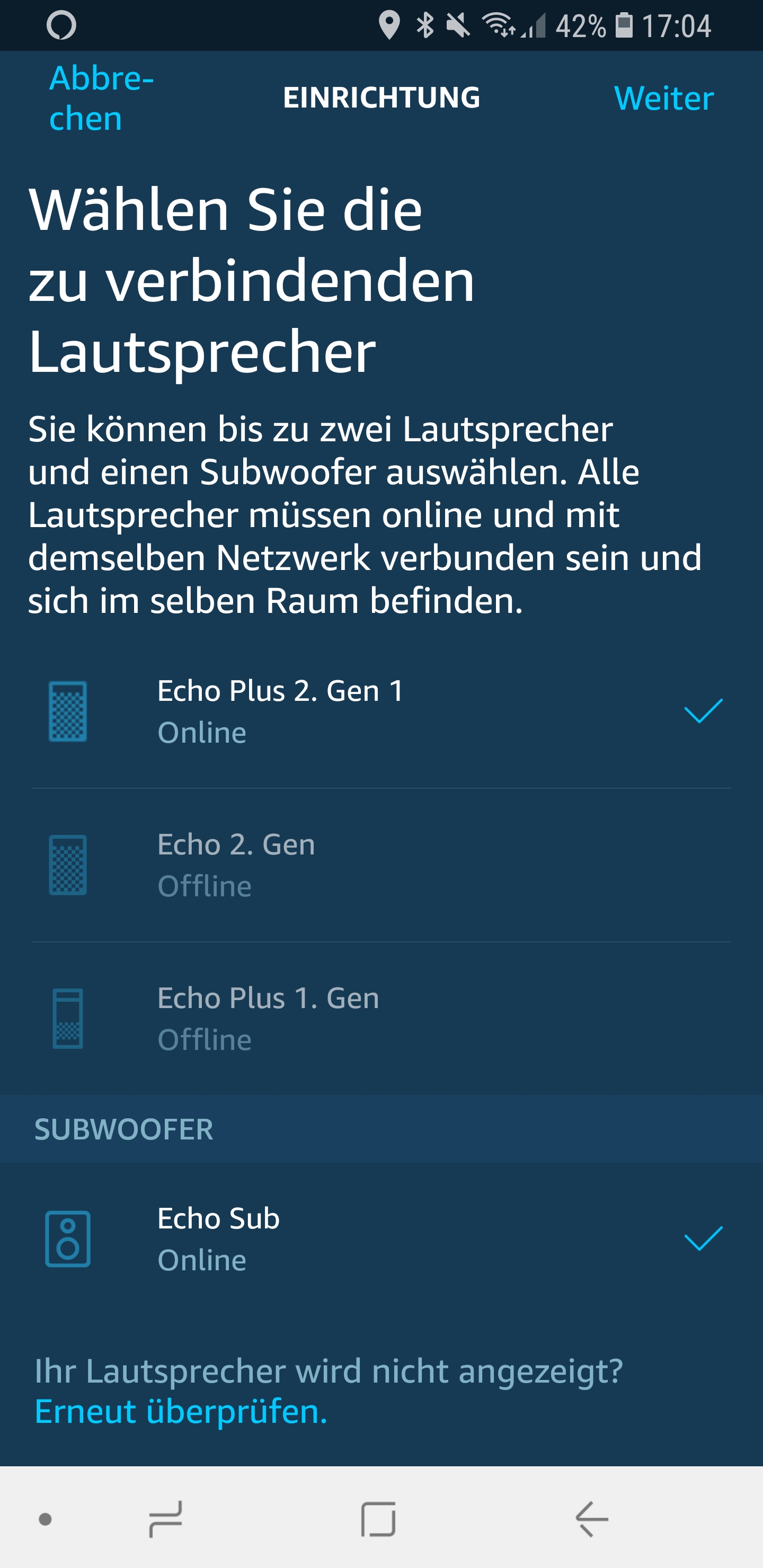 Schauen wir uns aber schnell mal an, wie man das Stereo Paar bzw. das Sub Paar in der Alexa App erstellt. Dazu habe ich euch die einzelnen Schritte aus der App festgehalten. Wählt am besten zum Start den Echo Sub oder Plus aus und navigiert dort in die Einstellungen. Letztendlich aber einfach einen Lautsprecher, der in das Paar eingebunden werden soll. Von dort aus könnt ihr dann die Einrichtung beginnen!