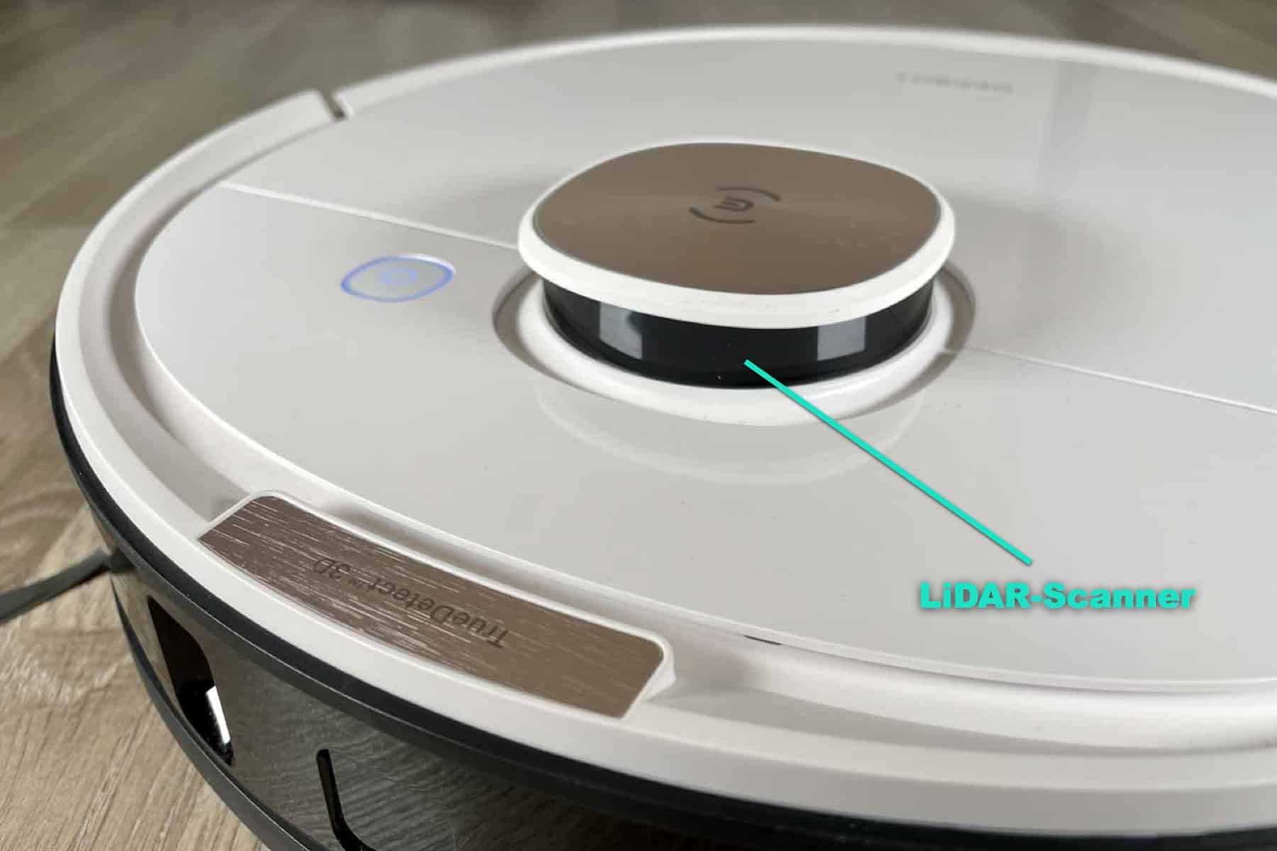 Der LiDAR-Scanner kommt meist in Form eines kleines Turmes auf dem Saugroboter zum Einsatz. Wenige Modelle haben diesen auch im Körperinneren verbaut. Die Scanner rotieren schnell um die eigene Achse und werfen gleichzeitig einen Laserstrahl aus, der von deinen Möbeln, Wänden und allen anderen Gegenständen reflektiert wird. Ein weiter Sensor fängt diese Reflexionen wieder auf und wandelt dessen Informationen um. Diese Technik verhilft dem Saugroboter, sich zu orientieren. Damit kann er in geraden und intelligent vorausgeplanten Bahnen durch dein Zuhause navigieren.
