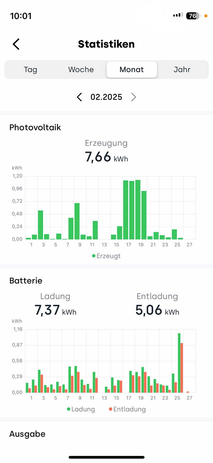Bevor ich über meine bisherigen Erfahrungen spreche, kurz der Hinweis, dass mein aktueller Testzeitraum im Januar begonnen hat und damit nicht die perfekte Zeit für Sonnenenergie darstellt. Im Februar wurde es schon tageweise besser, allerdings kann man die richtigen Ergebnisse wohl erst ab April oder Mai erwarten. Daher werde ich diesen Testbericht später noch um diesen Zeitraum ergänzen.