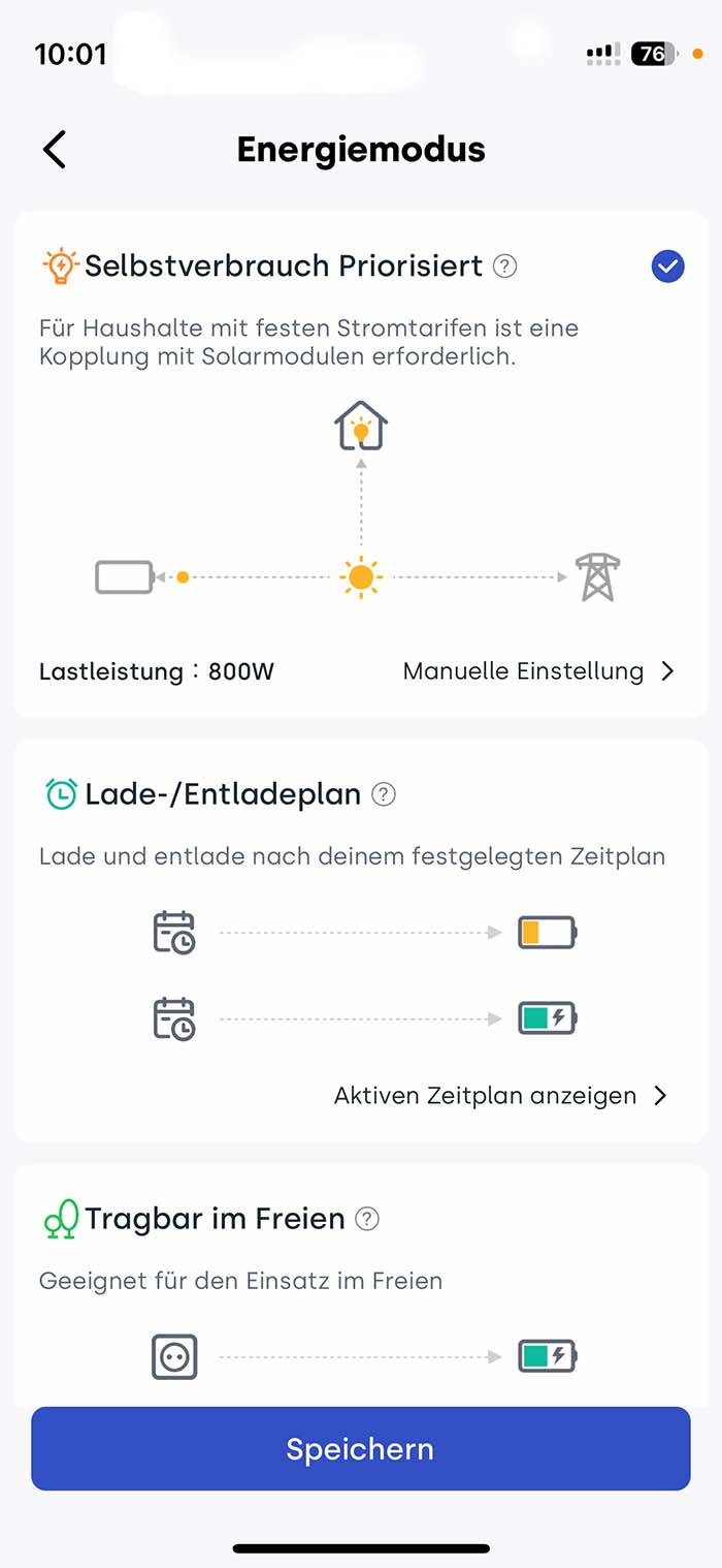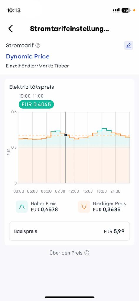 Die App bietet noch viele weitere Funktionen, um das Balkonkraftwerk ganz an seine Bedürfnisse anzupassen. So kann man zum Beispiel auch einstellen, ob der Speicher nur von den Solarpanels gespeist werden soll oder auch über den Netzanschluss. Zudem kann man auch seinen Stromtarif direkt in der App hinzufügen, allerdings nur für bestimmte Anbieter. Hier findet man unter anderem auch Anbieter wie Tibber, meinen Tarif bei aWATTar konnte ich jedoch leider nicht einstellen. Diese Funktion ist natürlich besonders praktisch, wenn man einen dynamischen Stromtarif hat und den Verbrauch an den Strompreis anpassen möchte. Da ich meinen dynamischen Tarif in einer separaten App einsehen kann, kann ich so aber auch Ladezyklen für den Speicher aus dem Hausnetz einstellen, wenn der Strom einmal besonders günstig ist.