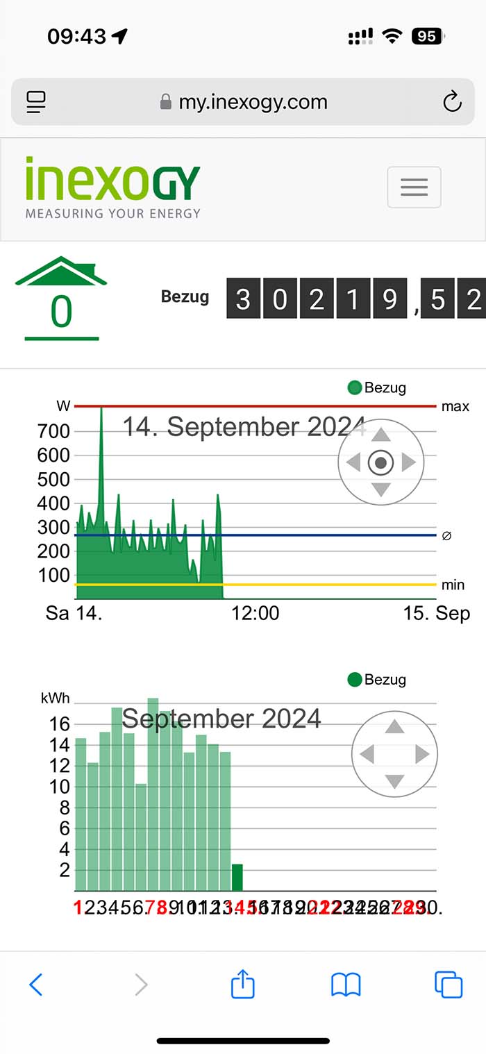 Da ich einen smarten Stromzähler besitze, kann ich in der zugehörigen Live Ansicht auch wunderschön beobachten, wie die Grundlast meines Zuhauses durch das Balkonkraftwerk abgefedert wird. Scheint die Sonne stark auf die Panels, geht die Verbrauchsanzeige meines Zählers teilweise sogar runter bis auf 0W, sodass ich in diesen Momenten also komplett autark mit kostenlosem Strom versorgt bin. In der App kann ich mir jederzeit, auch von unterwegs, den aktuellen Status anschauen und auch Parameter anpassen. Dies hat in meinem Testzeitraum alles wunderbar funktioniert.