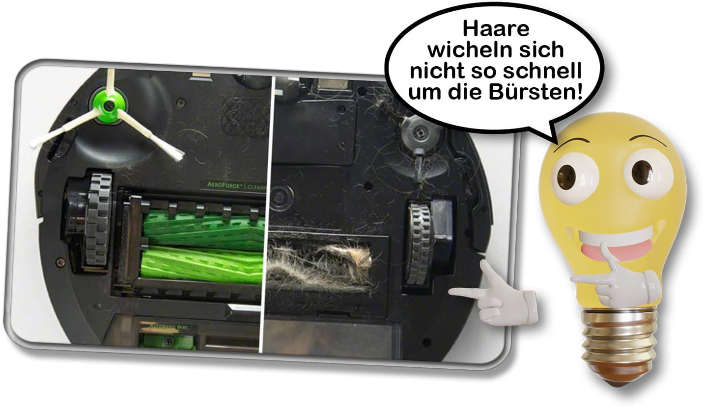 Ein weiterer starker Vorteil der AeroForce Bürsten ist, dass sie beim Einsaugen eines Kabels gegenläufig rotieren können. Das bedeutet, erkennt der Roboter, dass er gerade ein Kabel aufgesaugt hat und dieses verheddert sich auf der Rolle, so startet er die gegenläufige Rotation und wirft das Kabel somit wieder aus den Bürsten.