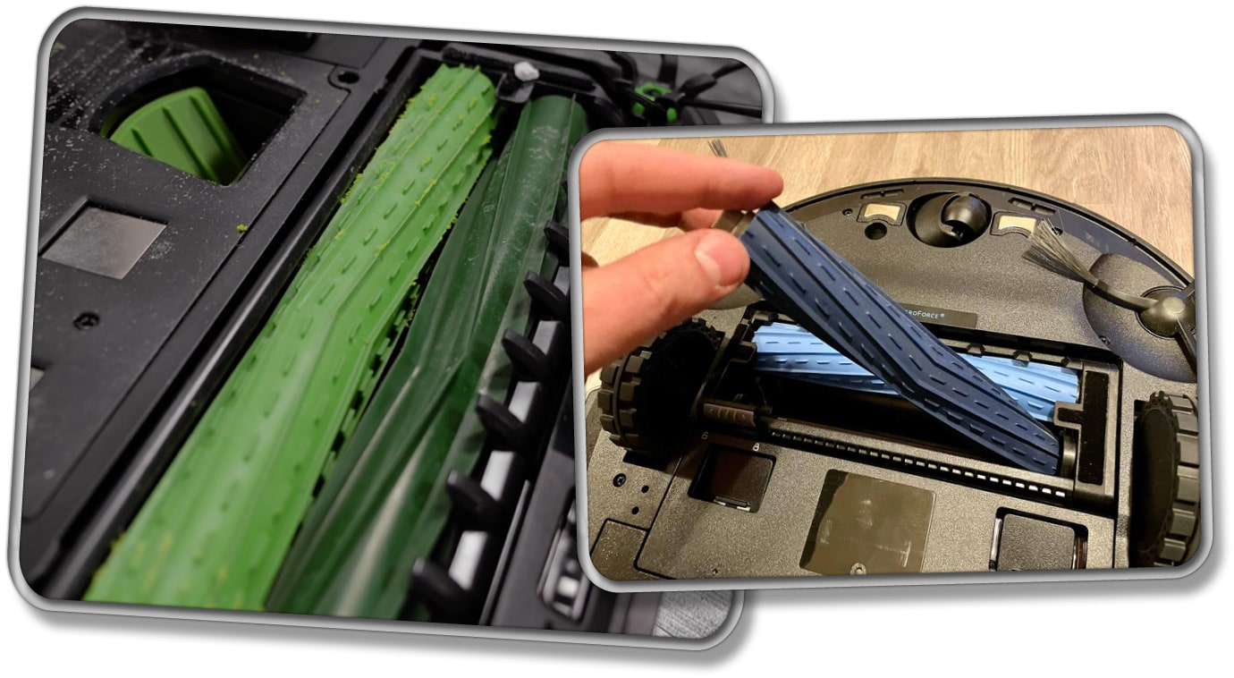 Eine der Walzen ist für das Aufwirbeln des Schmutzes zuständig, wohingegen die andere den Schmutz in Richtung der Saugöffnung transportiert. Sie sind ebenso einfach zum Reinigen herausnehmbar wie eine konventionelle Bodenbürste eines Saugroboters, bieten jedoch verschiedene Vorteile gegenüber dieser. Fast alle aktuellen Saugroboter von iRobot besitzen die AeroForce Doppelwalzen.