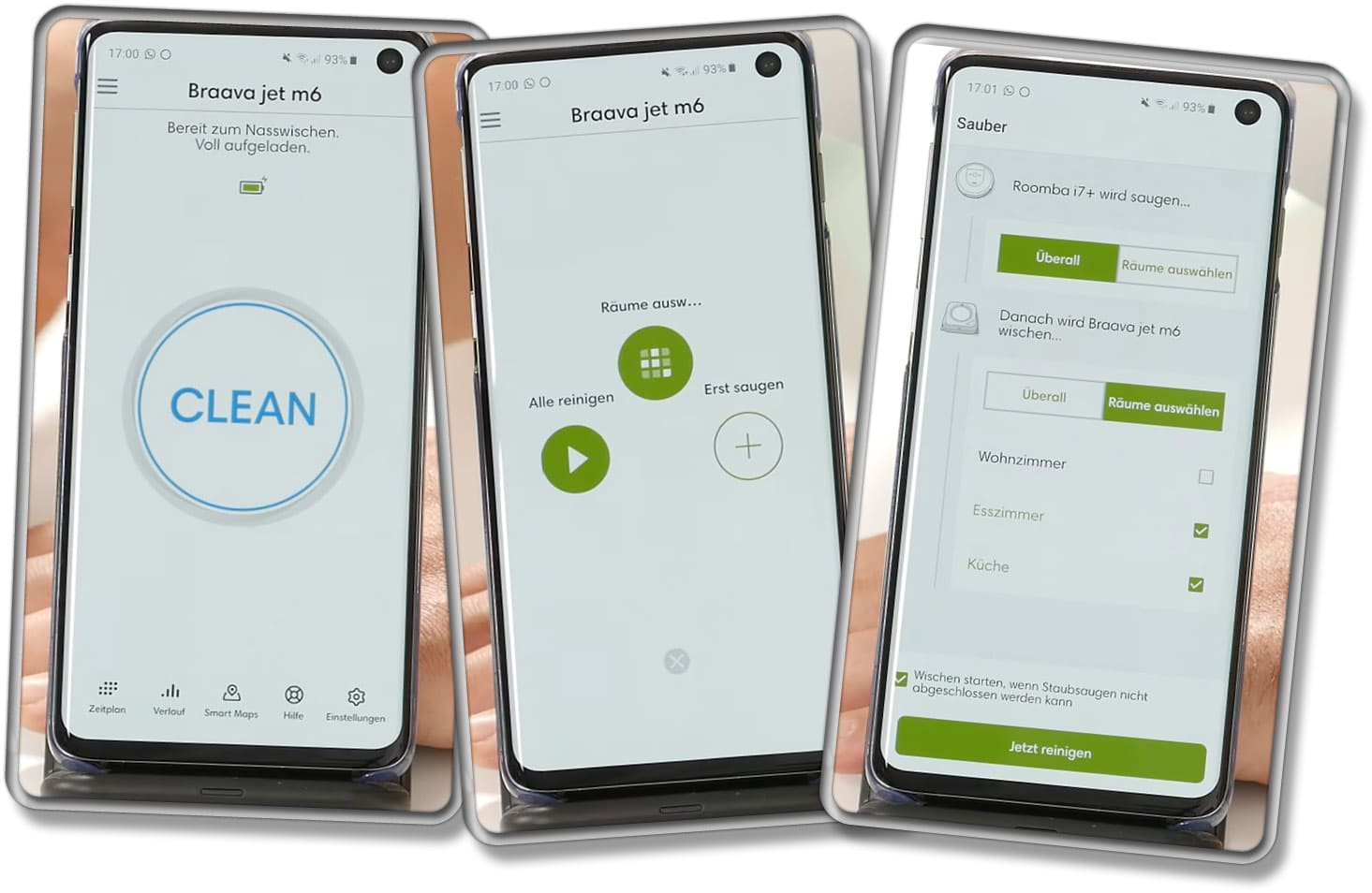 - Jetzt startet dein Roomba die Reinigungsfahrt und sobald diese beendet ist, fängt dein Braava Jet M6 an zu wischen.