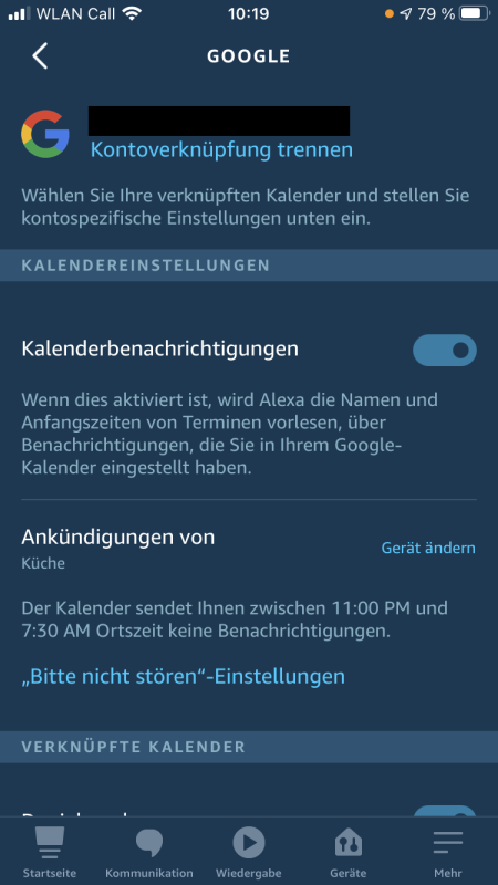 Wenn du für einen Anbieter die Kalenderbenachrichtigungen aktivierst, so wirst du automatisch aufgefordert, den „Bitte nicht stören“ Modus für den ausgewählten Echo zu aktivieren. Das ist ein „kann“ und kein „muss“. Sicherlich aber sinnvoll, wenn zum Beispiel ganztägige Geburtstagseinträge im Kalender stehen und man nicht um 0 Uhr davon in Kenntnis gesetzt werden möchte.