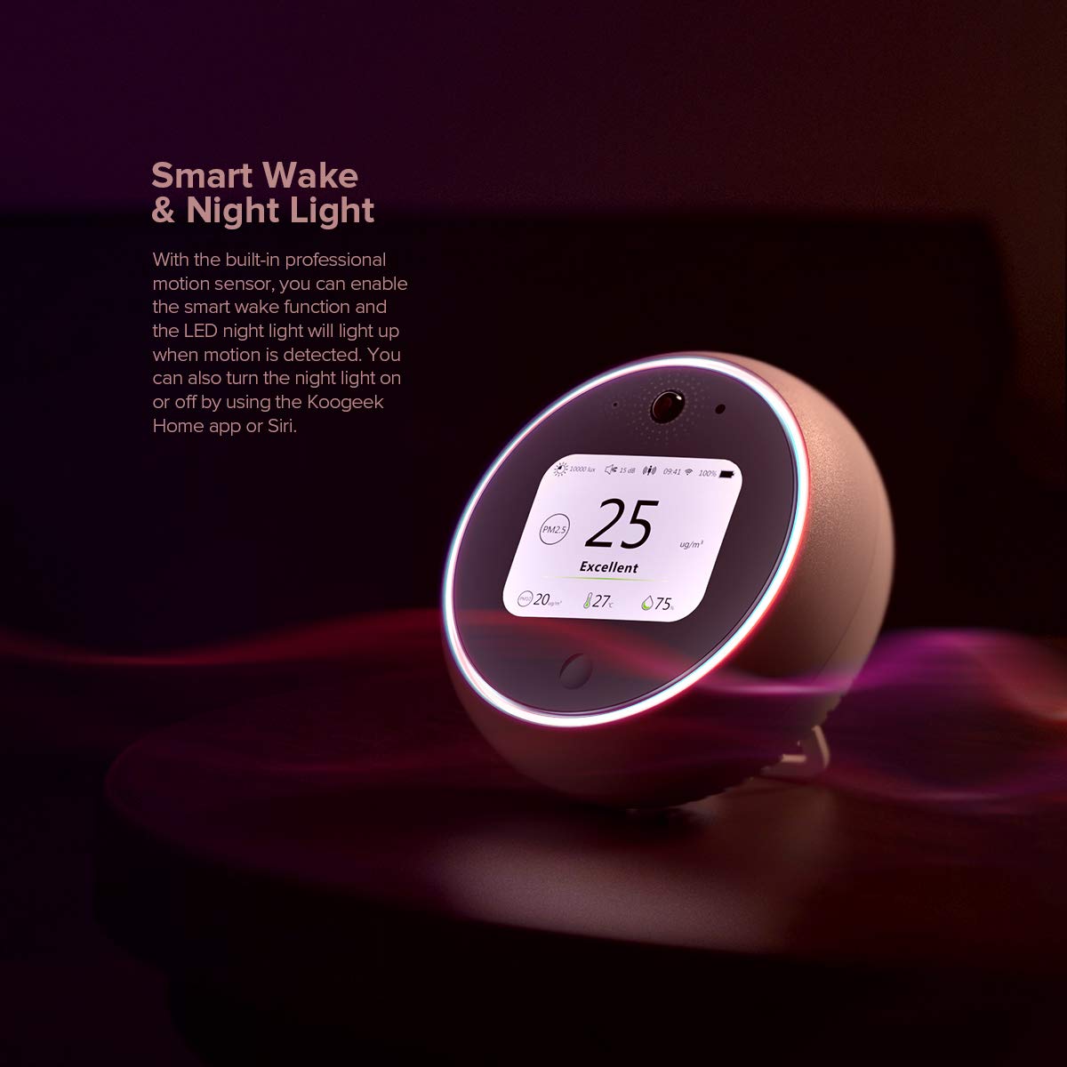 Optisch erinnert mich das neue Gerät von Koogeek sehr an einen Echo Spot, nur mit einem Sprachassistenten hat der Koogeek K1 nicht viel zu tun. Er dient vor allem dem Monitoring der Luftqualität. Darüber hinaus kann er die wichtigsten Daten auf seinem beleuchteten LCD Display anzeigen. Reagieren tut das Display auf Bewegung, welches sich nach 10 Minuten Inaktivität auch selbstständig wieder ausschaltet. Ein Lärmsensor ist ebenfalls verbaut, der noch weitere interessante Daten liefern kann.