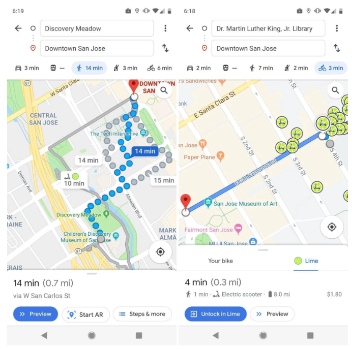 Wie Lime nun auf seinem offiziellen Blog mitteilt, können ab sofort auch eScooter in Google Maps gefunden werden. Im Bereich „Gehen“ und „Radfahren“ findet man diese dann mit Weg, Distanz, Akkustand und einigen weiteren Informationen. Auch angemietet werden können sie dann direkt von dort aus.