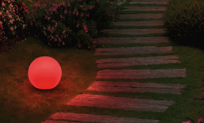 Nach ZigBee-Gartenspots und Wandaußenleuchten gibt es nun auch eine Leuchtkugel, die mich doch recht an das Modell Calluna von tint erinnert. Die Leuchtkugel hat einen Durchmesser von 35 cm und kann wahlweise mit und ohne Erdspieß im Garten platziert werden.