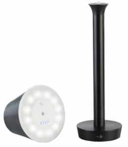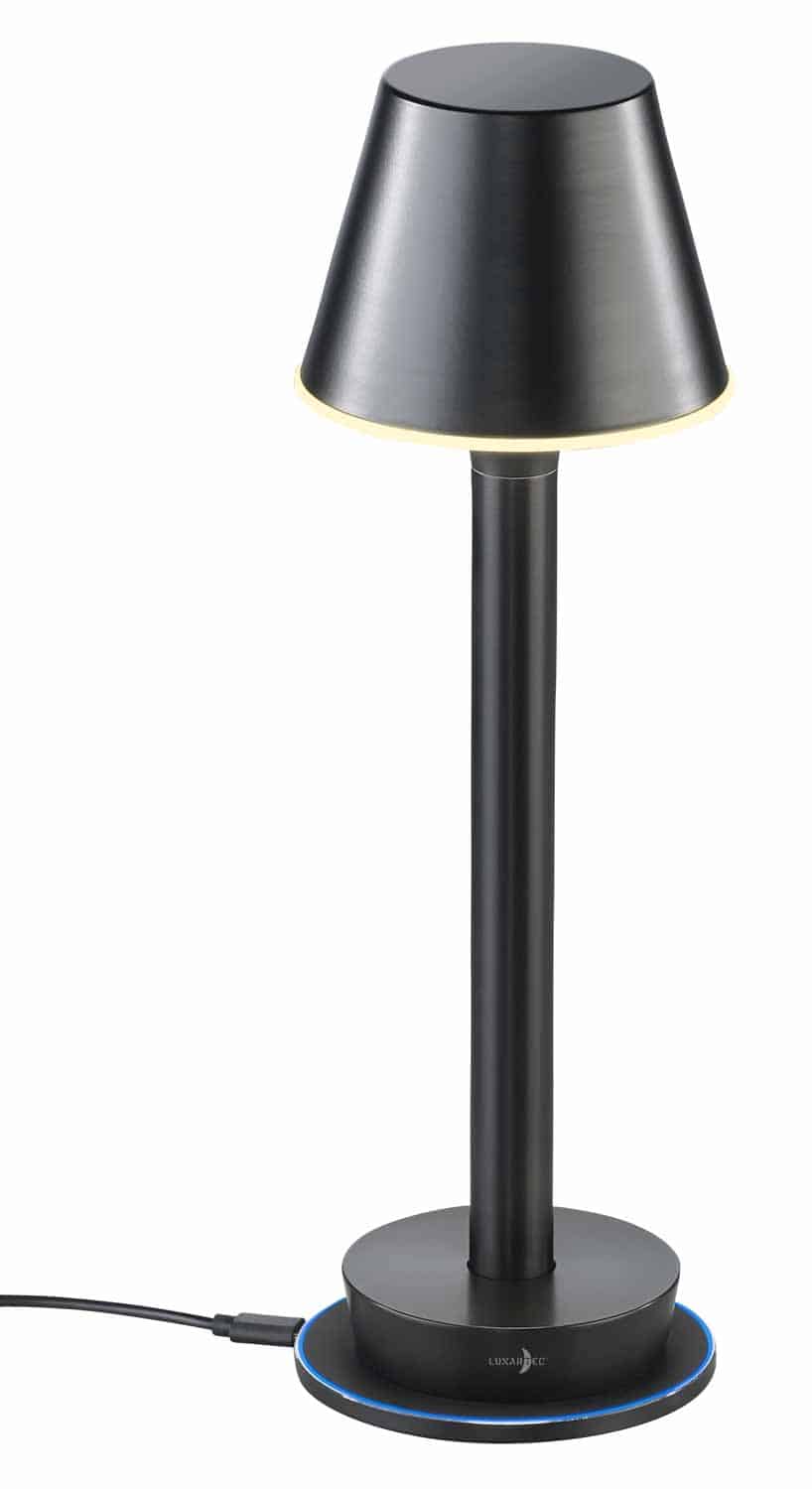 Die Bluetooth LED-Tischleuchte von Lunartec verfügt über eine Helligkeit von 2700 bis 4000 Kelvin und ist bis auf 40 Lumen dimmbar. Ebenso verfügt sie über ein RGB Farbspektrum aus 16 Millionen Farben, das über die ELESION-App angepasst werden kann. Mit bis zu 18 Stunden Laufzeit, kann die Leuchte mehrere Abende im Innen- als auch Außenbereich für stimmungsvolle Beleuchtung sorgen. Ist der Lithium-Ionen-Akku mal leer, so lässt sich die Lampe über eine mitgelieferte QI-Ladematte wieder aufladen.