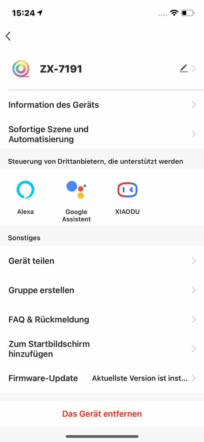 Steuerung mit Alexa, Google und Siri