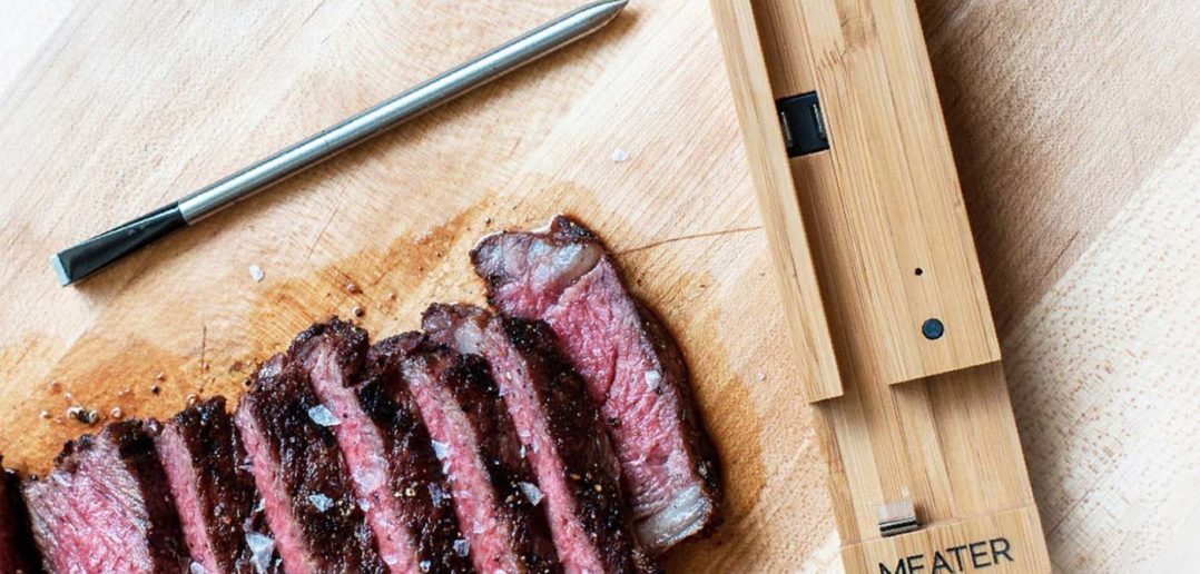 Mit dem Meater-Fleischthermometer hat smarte Technik auch in die Zubereitung von Grillgut Einzug erhalten. Das Thermometer wird mit der Meater-App verbunden, welche euch den perfekten Garzeitpunkt für eure Steaks enzeigt.