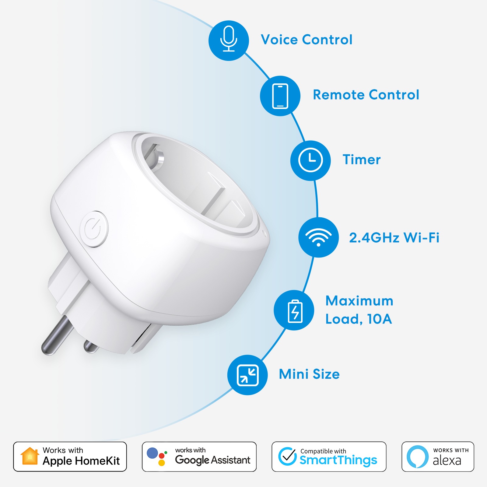 Mit Maßen von 5,6 x 5,6 x 5,4 cm ist sie schön klein und lässt sich so auch besser in Mehrfachsteckdosen betreiben. Sie funkt nach wie vor über das 2,4 GHz Netzwerk, hat eine Maximale Leistung von 10A und kann neben HomeKit auch mit Alexa oder dem Google Assistant gesteuert werden.