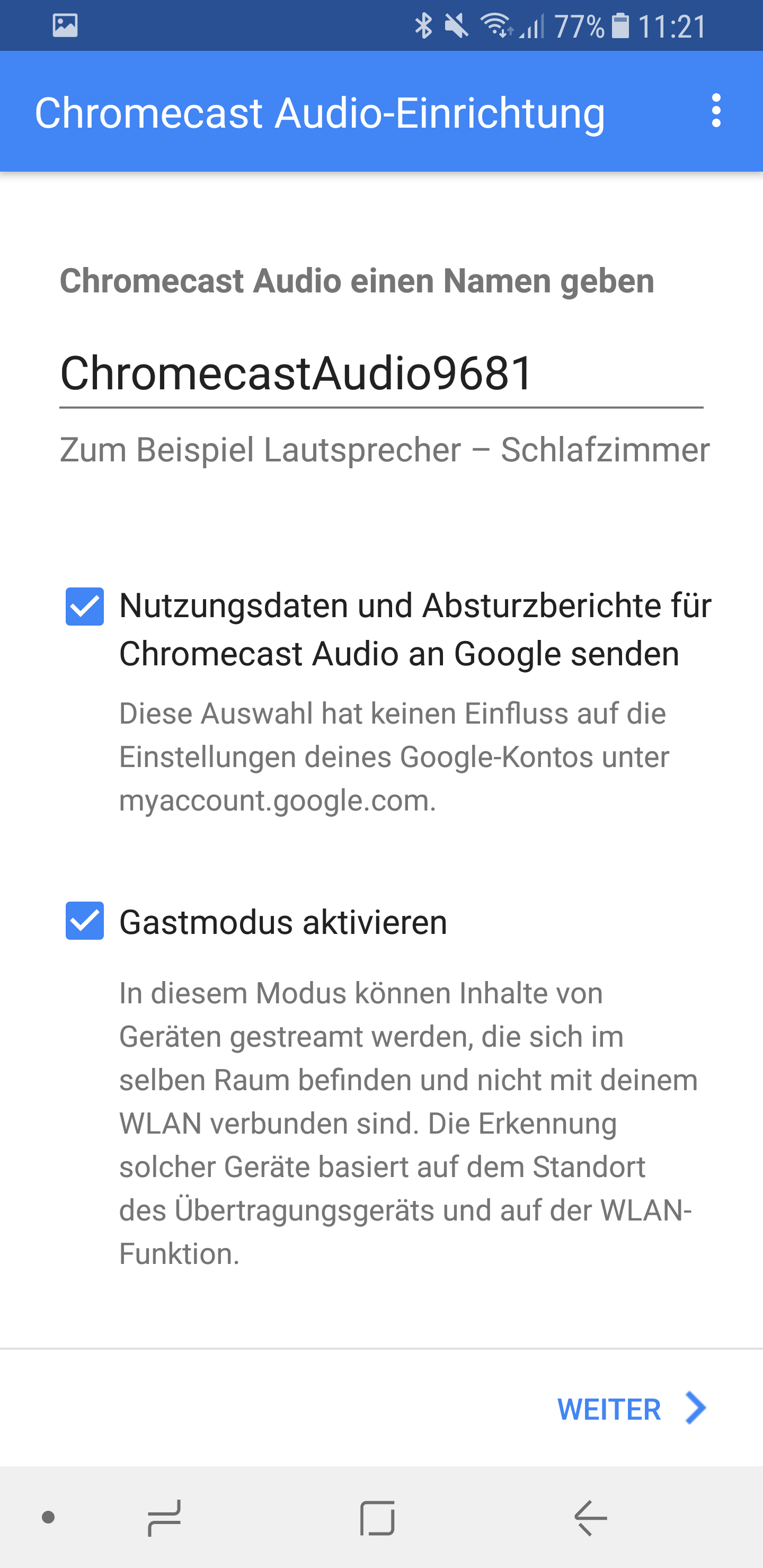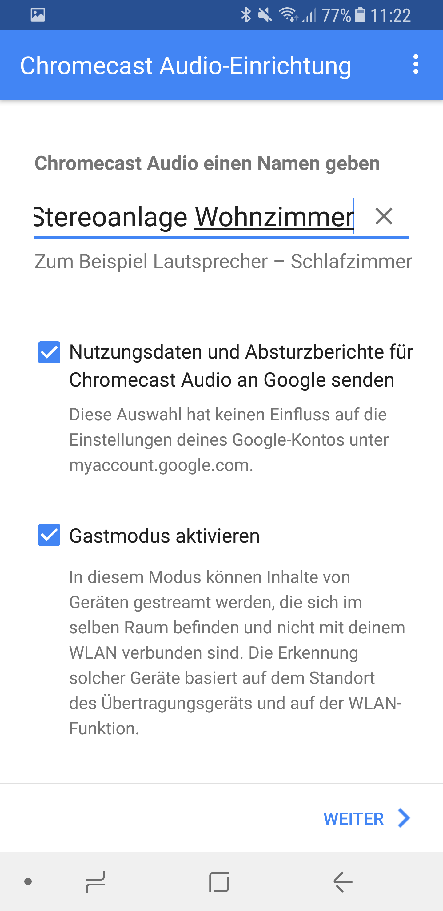 - Gebt eurem Chromecast Audio einen Namen.