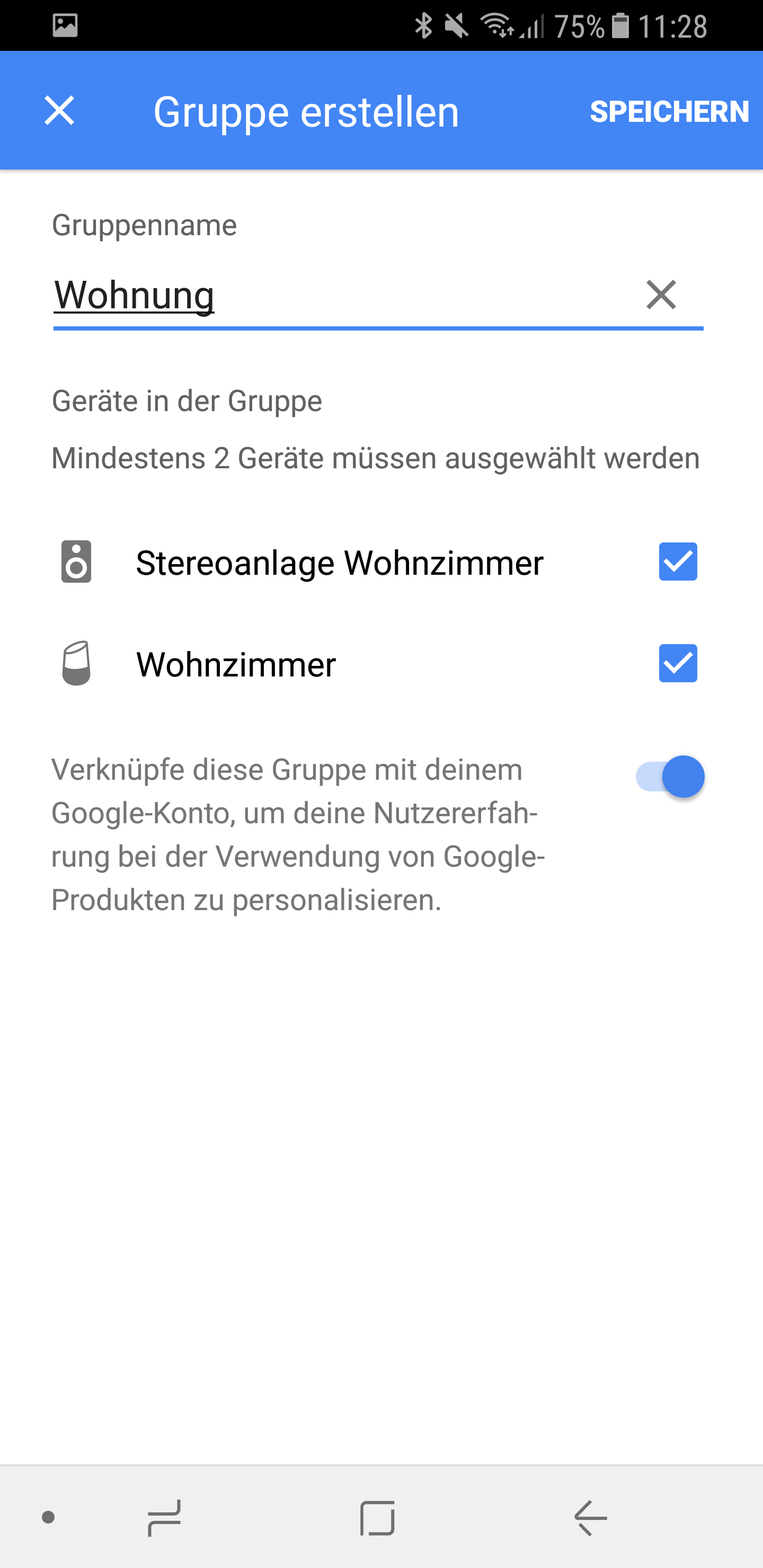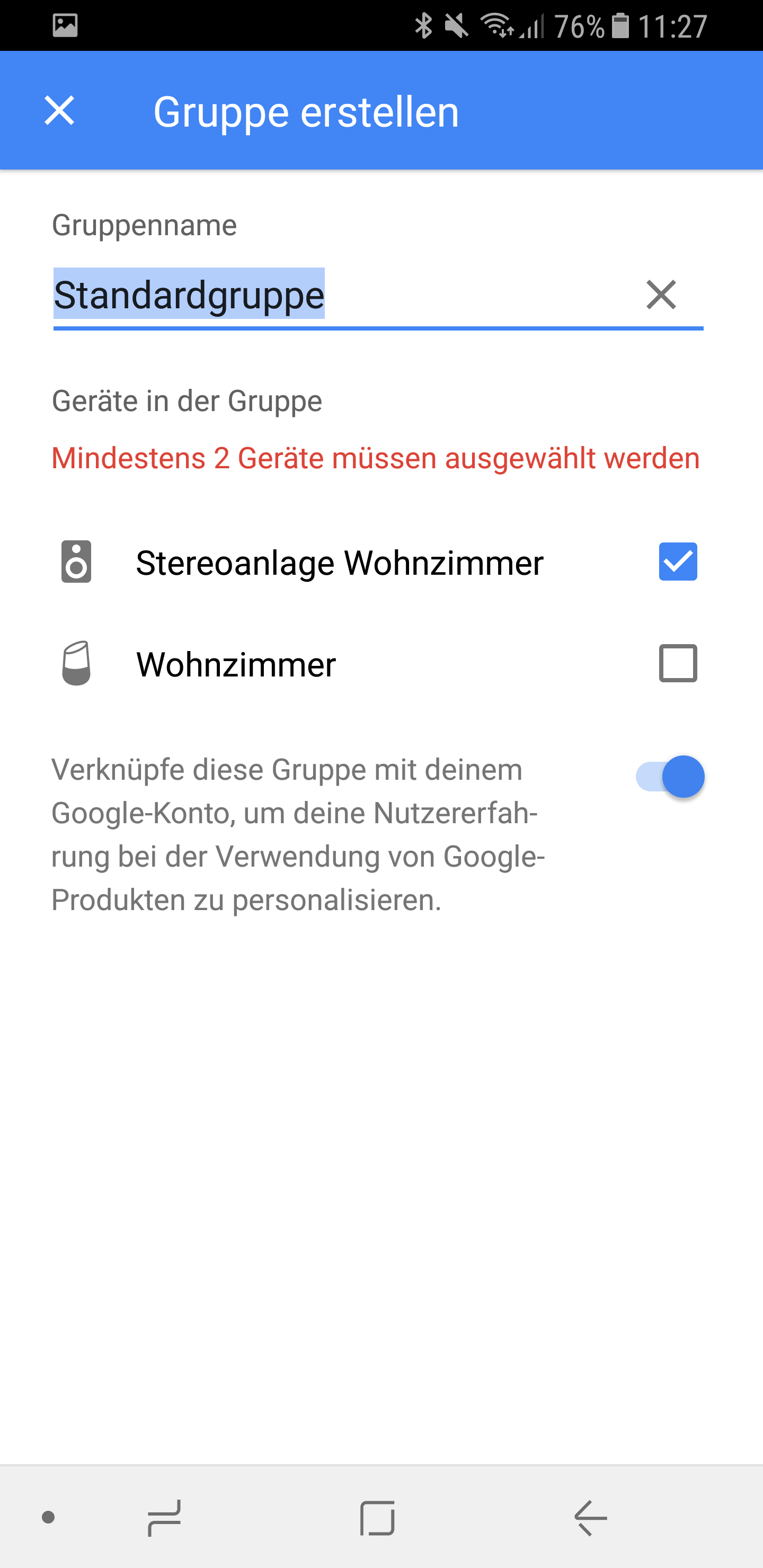 Jetzt müssen wir noch eine Gruppe erstellen, in die wir alle Google Cast fähigen Geräte hinzufügen. So können wir dann jede der erstellten Gruppen einzeln ansprechen.