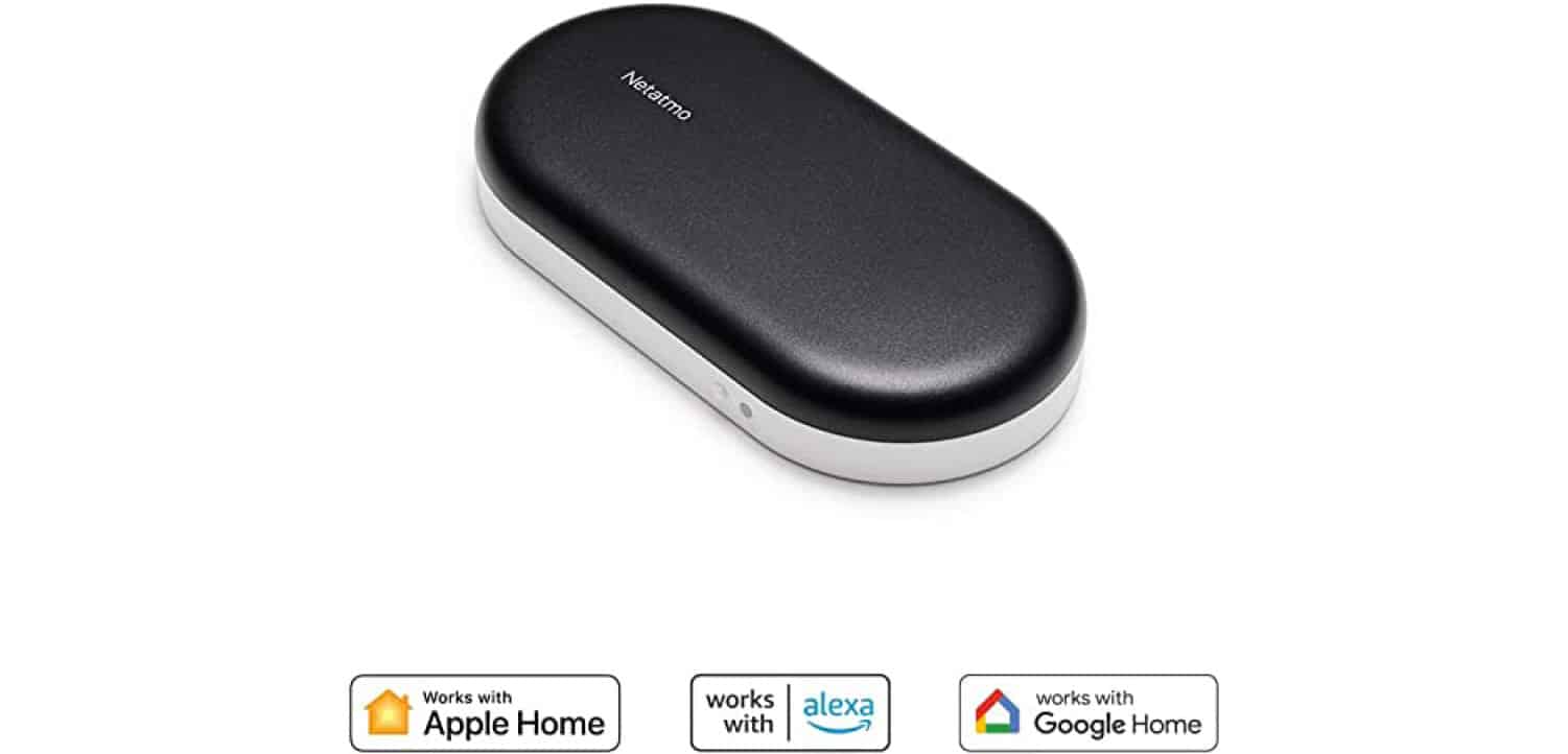 Die neue Klimaanlagen- und Wärmepumpensteuerung ist für schon installierte Anlagen gedacht, und soll diese im Nachhinein smart gestalten. Dabei handelt es sich um ein Infrarot-Modul, das an alle schon installierten Geräte genannter Art ergänzt werden kann, die über eine Infrarotfernbedienung mit Display verfügen. Nach Einrichtung lassen diese sich über Infrarot mit dem Gerät und schließlich mit HomeKit verbinden. Natürlich unterstützt das Gerät von Netatmo auch weitere Sprachassistenten wie Google oder Alexa.