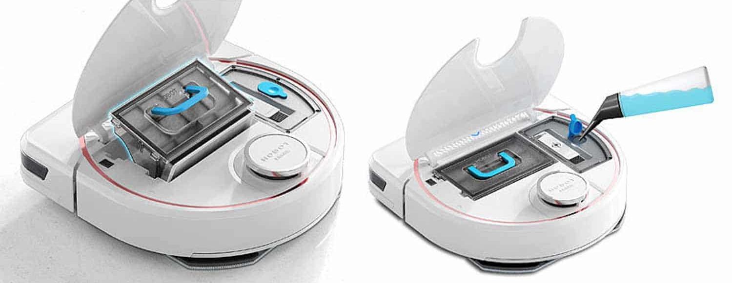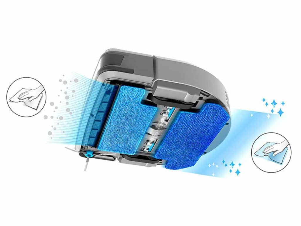 Ein Teil der Wischfunktion hat nun Platz für die Bodenbürste gemacht. Von einer vibrierenden oder oszillierenden Funktion, wie noch beim Legee 7, ist hier nicht mehr die Rede. Dafür drückt die Wischplatte mit einem individuell einstellbaren Druck auf den Boden. Der Sichler Hobot Legee D7 erkennt nun selbstständig Teppichboden und hebt auf diesem sein Wischpad ganze 6 Millimeter in die Höhe.