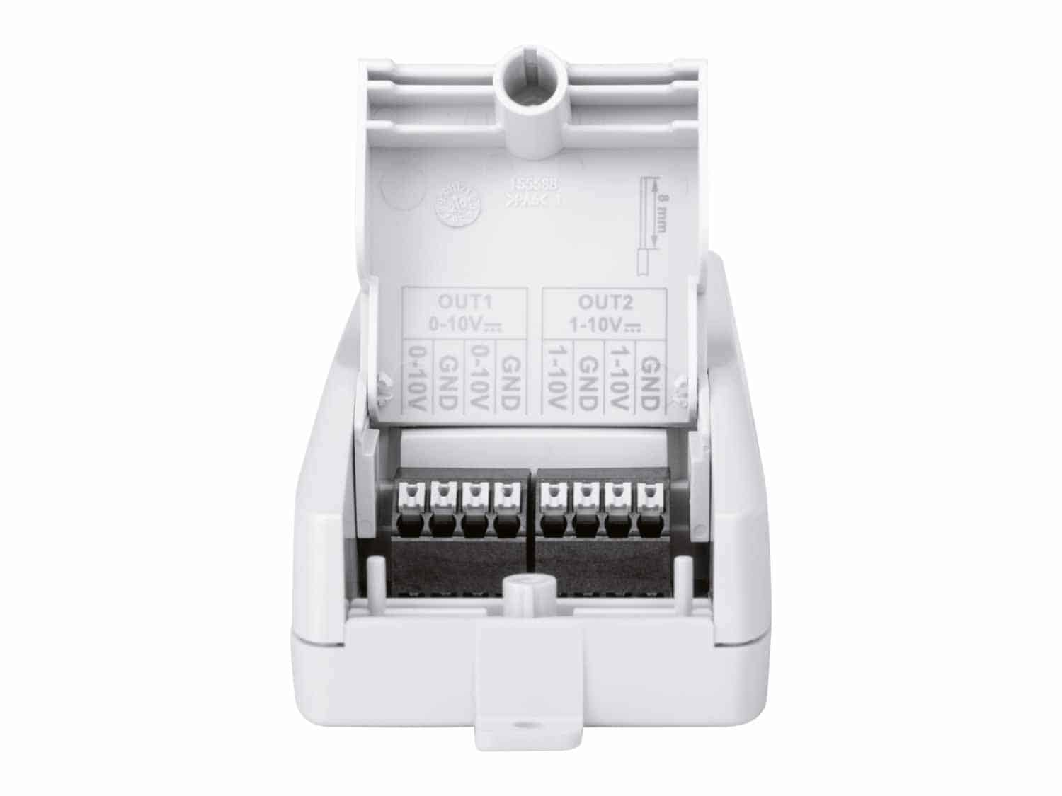 Der einfach zu montierende Universalaktor verfügt über eine 0–10 V Schnittstelle und kann somit analoge Dimmer steuern. Du hast mit diesem Gerät die Möglichkeit verschiedene Helligkeits- und Zeitprofile zu erstellen. Auch Kontrollierte Wohnraumlüftungen (KWL) kann integriert werden. So kannst du mit einem Knopfdruck eine Stoßlüftung starten und sparst gleichzeitig noch Heizkosten ein.