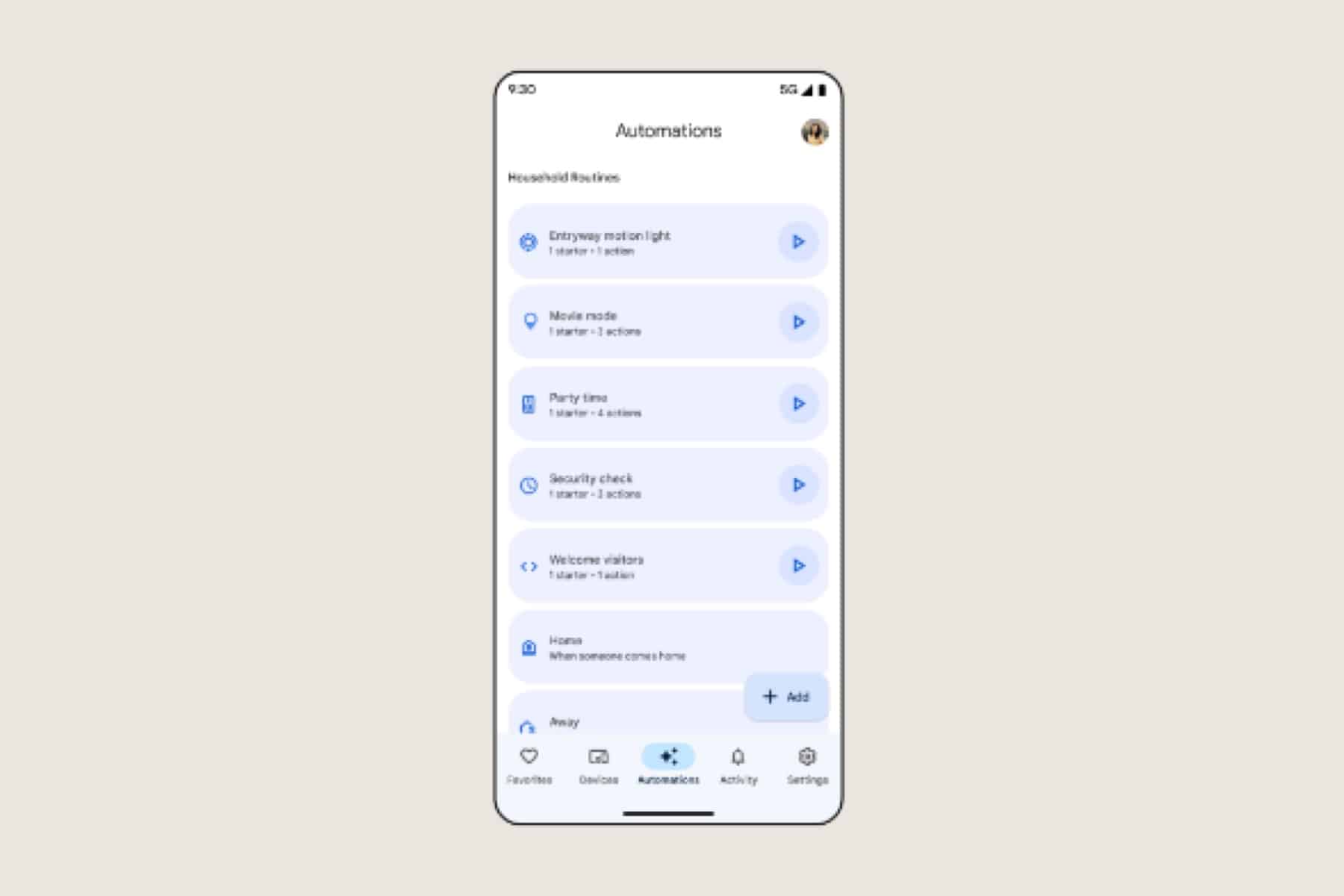 In der Google Home App wird es den Favoriten-Tab geben. Dieser ist dafür da, deine vernetzten und meist genutzten Geräte schnell und unkompliziert zu steuern. Jeder Nutzer hat andere Bedürfnisse und so ist es für Google ein Kernprinzip, einen individuellen Organisator zu schaffen, der für dich leichter erreichbar ist.