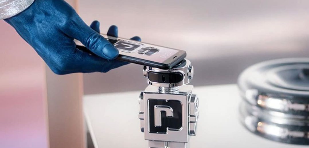 Der Parfumhersteller Paco Rabanne hat mit dem Parfumflakon Phantom den ersten vernetzten Duft auf den Markt gebracht. Die verchromte Parfumflasche hat die Form eines Roboters und soll den Nutzern über eine NFC-Funktion den Weg in die digitale Zukunft des Phantom Univers weisen. Der NFC-Tag befindet sich im Kopf des Roboters und stellt eure verschiedene Funktionen, wie interaktive Filter, personalisierte Playlists oder AR-Filter, zur Verfügung.