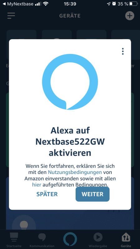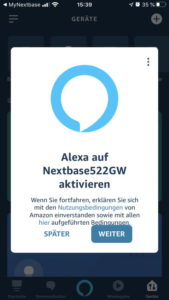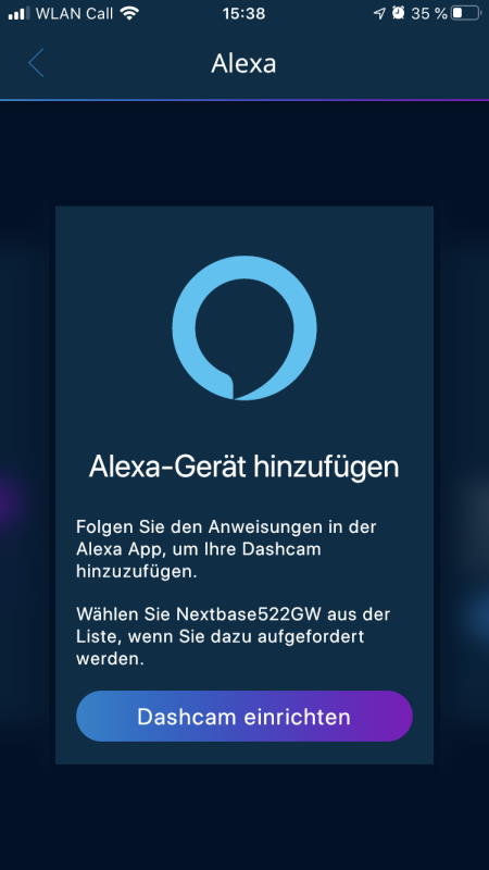 Die Installation ist eigentlich selbsterklärend. Nachdem man sich die „MyNextbase“-App heruntergeladen hat, beginnt man mit dem Einrichtungsprozess. Die App führt durch alle notwendigen Schritte und die Einrichtung war in meinem Fall nach 5 Minuten erledigt. Die Kopplung mit Amazon Alexa findet nachträglich in einem Schritt und einem Wechsel in die Alexa App statt. Nach dem Wechsel in die Alexa App ploppte automatisch der Hinweis zum neuen Gerät auf und musste nur noch bestätigt werden.