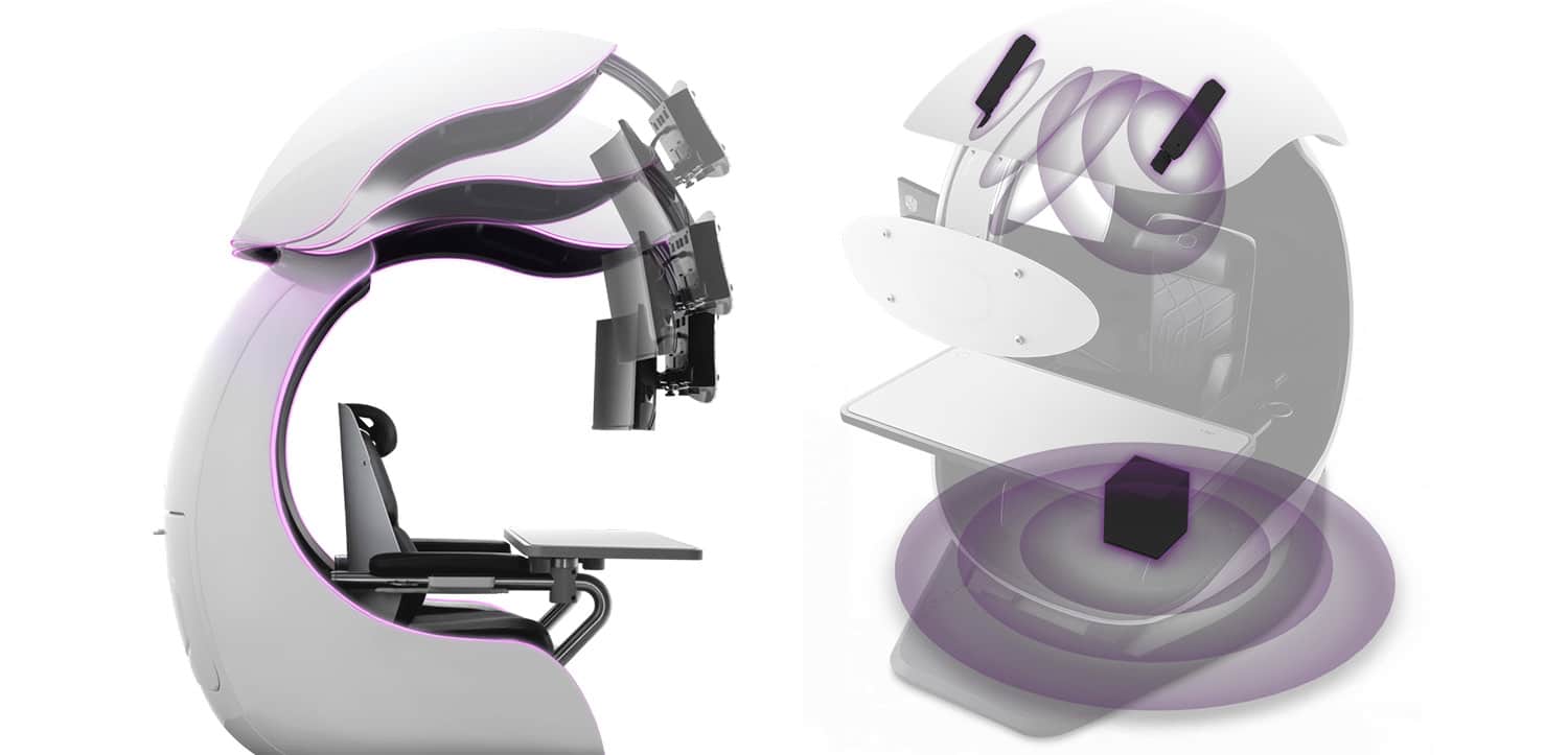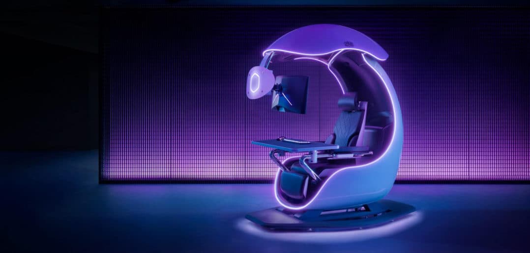 Verbaut wurden zudem immersive Surround-Sound-Lautsprecher, die ein erstaunlich räumliches Audioerlebnis bieten sollen. Um der Kapsel einen individuellen Look zu verpassen, wurde eine ARGB-Beleuchtung rund um die Konstruktion verbaut, die eine Vielzahl an individuellen Farbvariationen bietet. Eine extra große Schreibtischfläche ist außerdem ausgestattet mit einer induktiven Ladefläche für das Smartphone, einer für Mäuse optimale mikrogewebte Oberfläche und verschiedenen USB-Anschlüssen.
