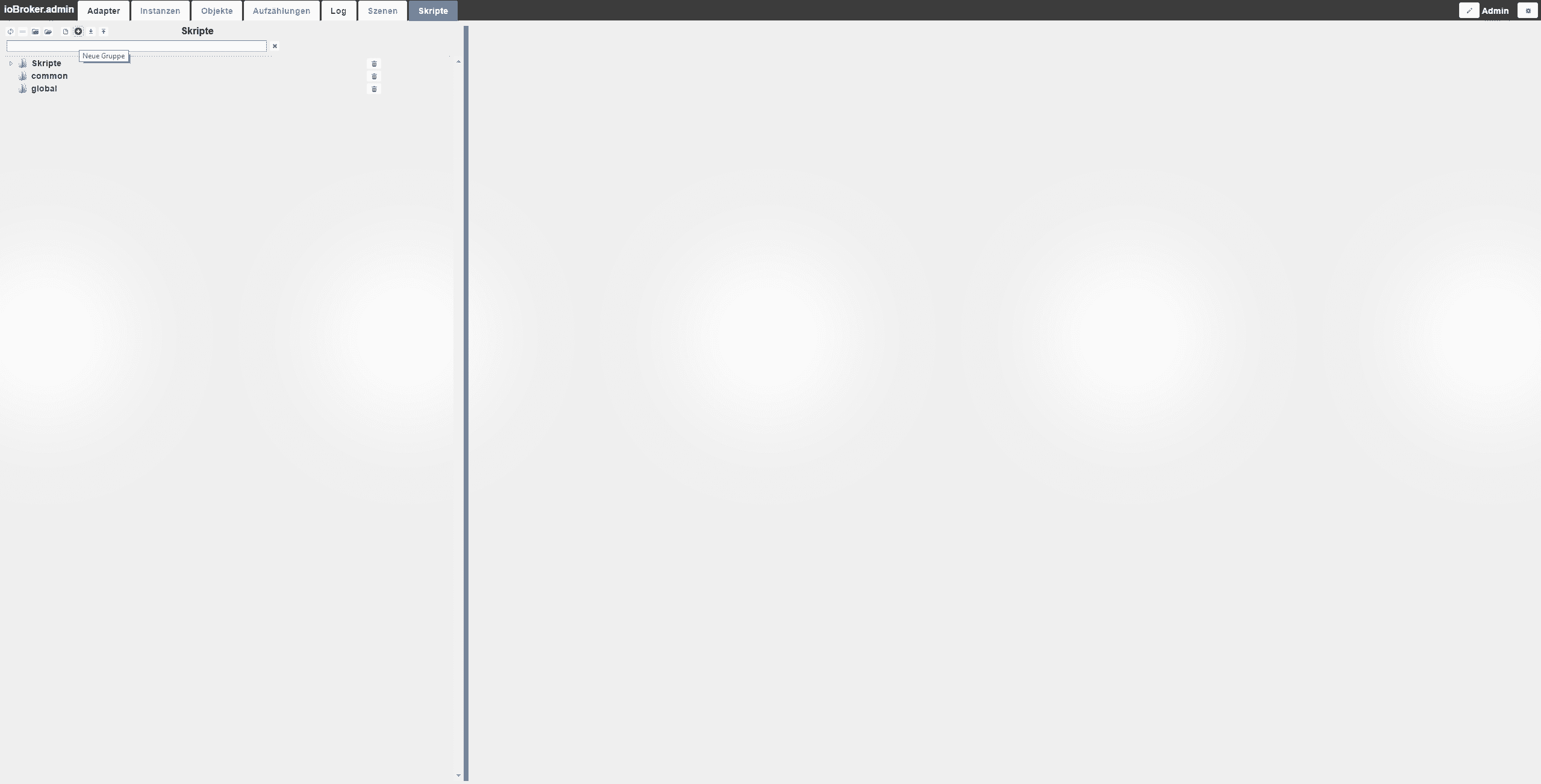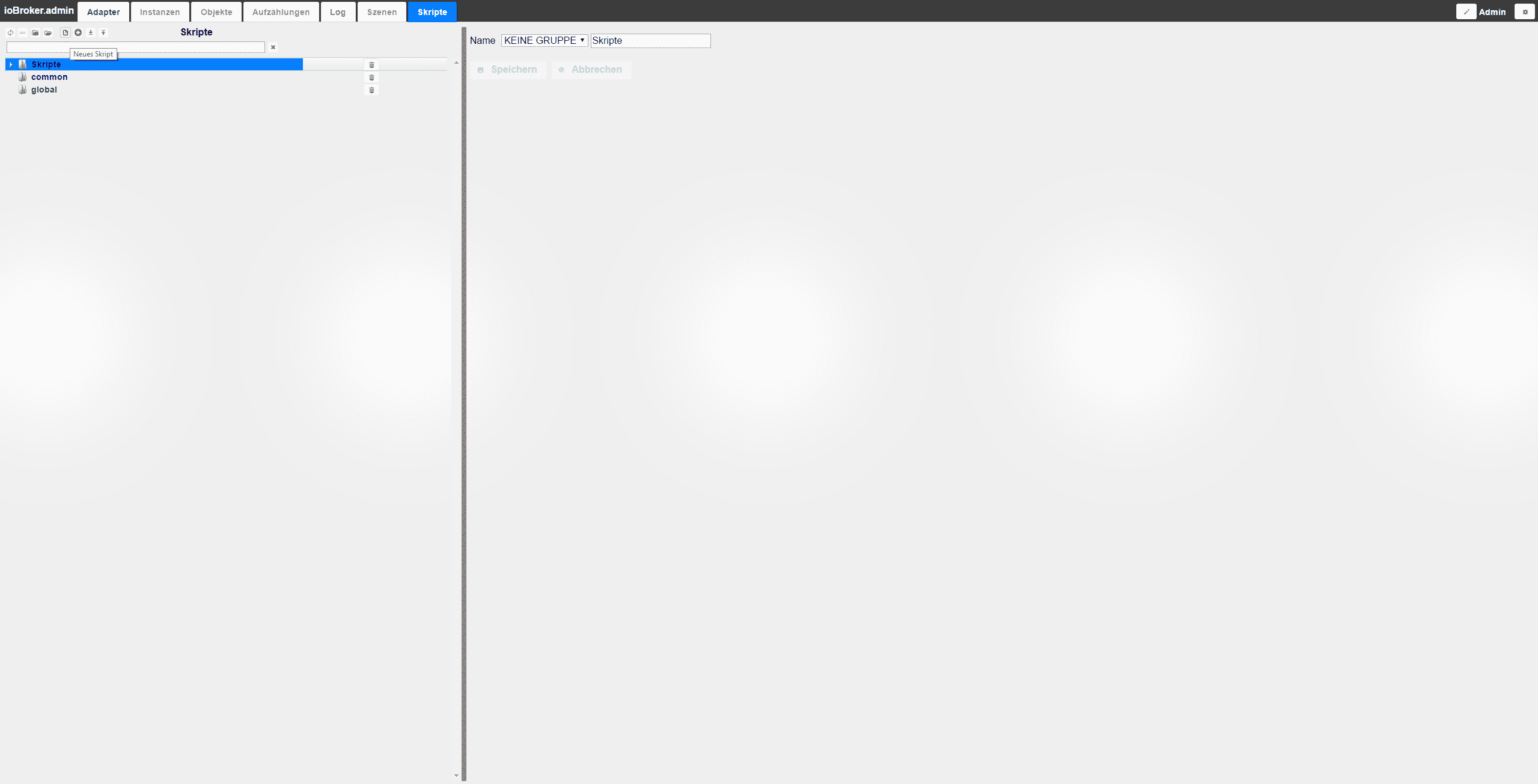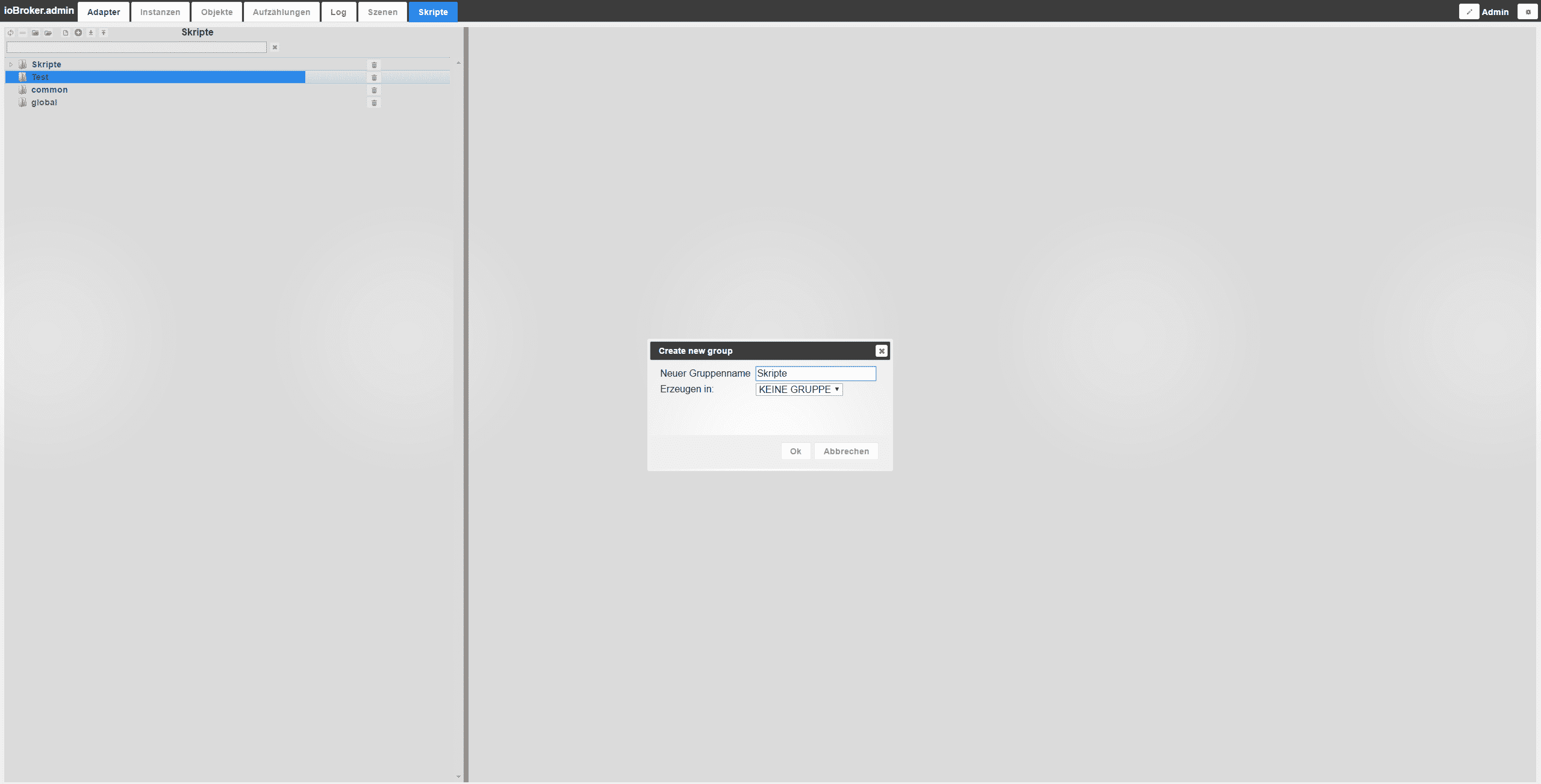 - Auf dem ersten Bild seht ihr das Tab „Skripte“. Dort könnt ihr einen neuen Ordner Anlegen, indem ihr oben links auf das Plus + „neue Gruppe“ klickt.