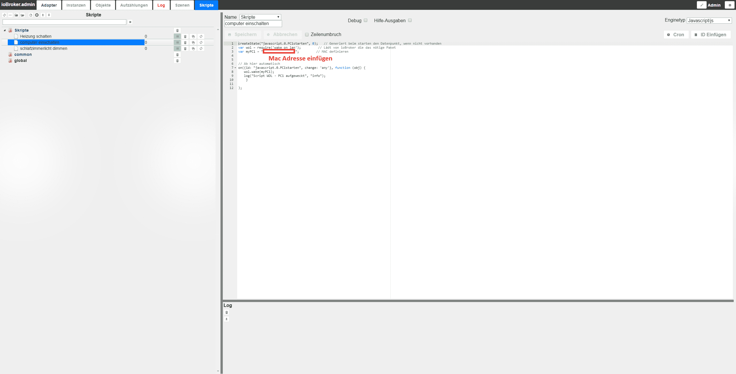 var myPC = „MAC Adresse“; // durch eure MAC Adresse ersetzten