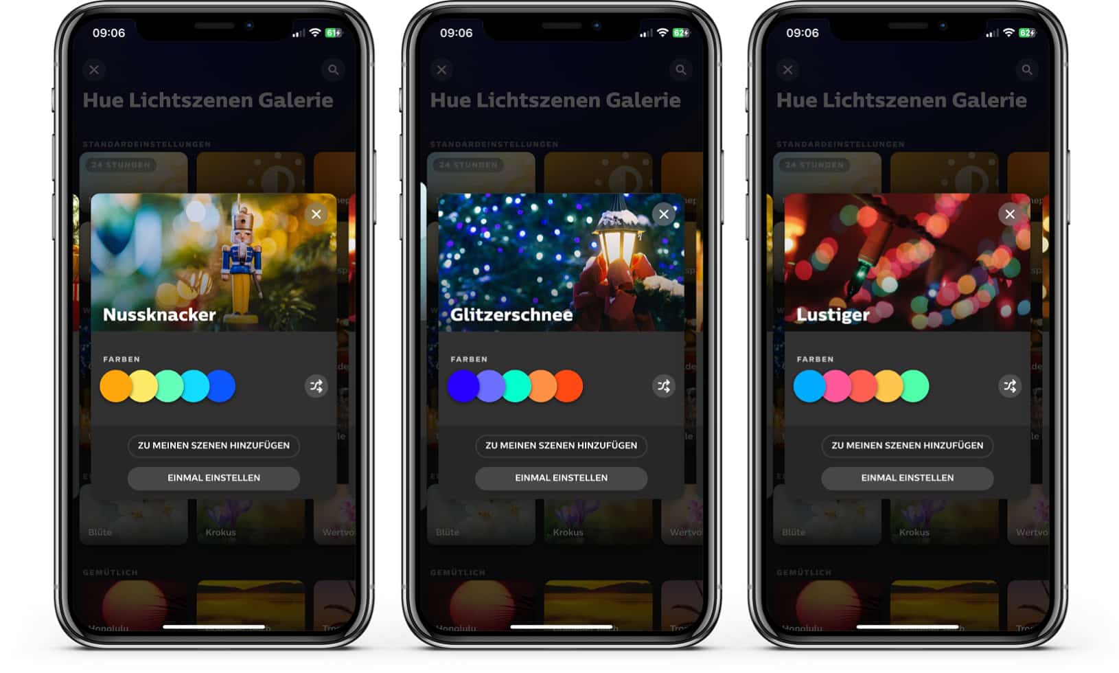 - Nussknacker, Lustiger und Glitzerschnee haben sich unseren anderen Urlaubsszenen in der Hue-Szenengalerie angeschlossen – und wurden speziell entwickelt, um diese Jahreszeit magischer denn je zu machen.