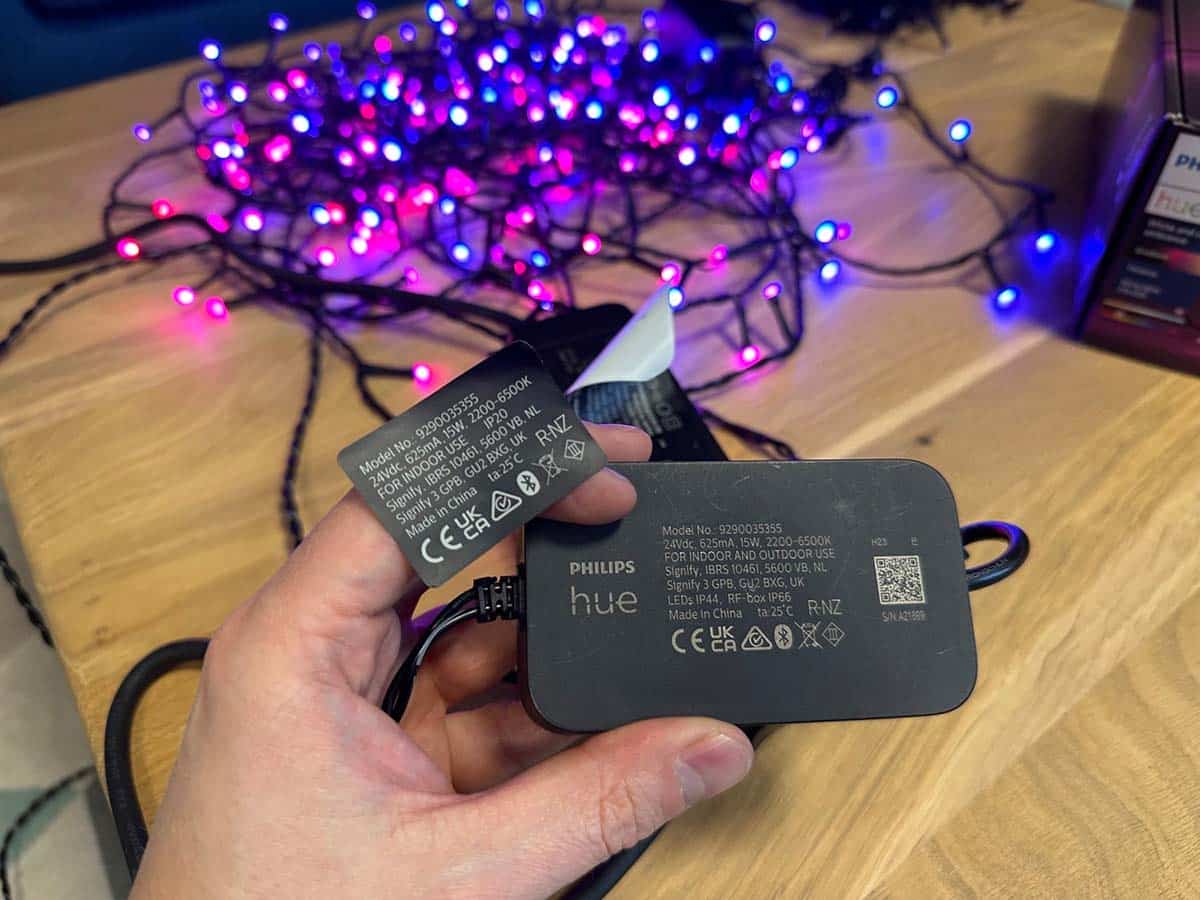 Der Kollege Fabian vom Hueblog hat bereits ein Exemplar der Festavia erhalten und sich dieses etwas genauer angeschaut. Dabei kam heraus, dass die Lichterkette laut den Etiketten auf dem Netzteil und dem Controller tatsächlich nur im Innenbereich genutzt werden darf, diese Etiketten allerdings nachträglich aufgeklebt wurden. Darunter kommen dann die eigentlichen Informationen ans Licht, welche die Eignung für den Außenbereich attestieren.