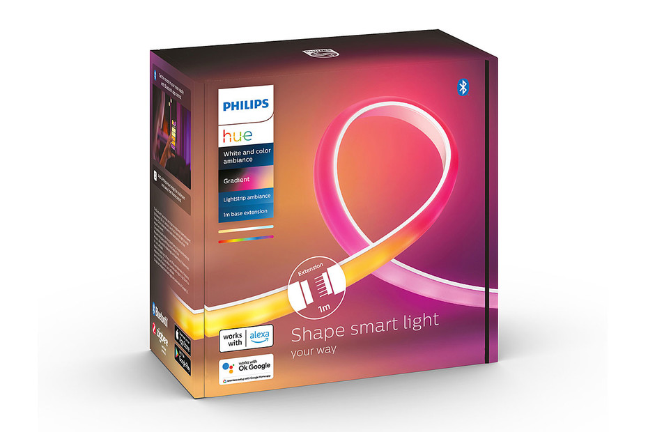 Mit dem Philips Hue Gradient Lightstrip Ambiance taucht nun erstmals ein zweites Leuchtmittel mit der Gradient-Technologie auf.