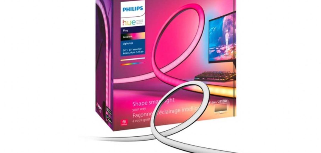 Philips Hue wird sein Gradient-Sortiment erweitern. Neben den bereits erhältlichen Play Gradient Lightstrips für Fernseher wird es zukünftig auch eine 24 – 27 Zoll-Variante für PC-Monitore geben. Dies geht aus einem Listing bei Best Buy hervor, welches mittlerweile wieder offline gestellt wurde.
