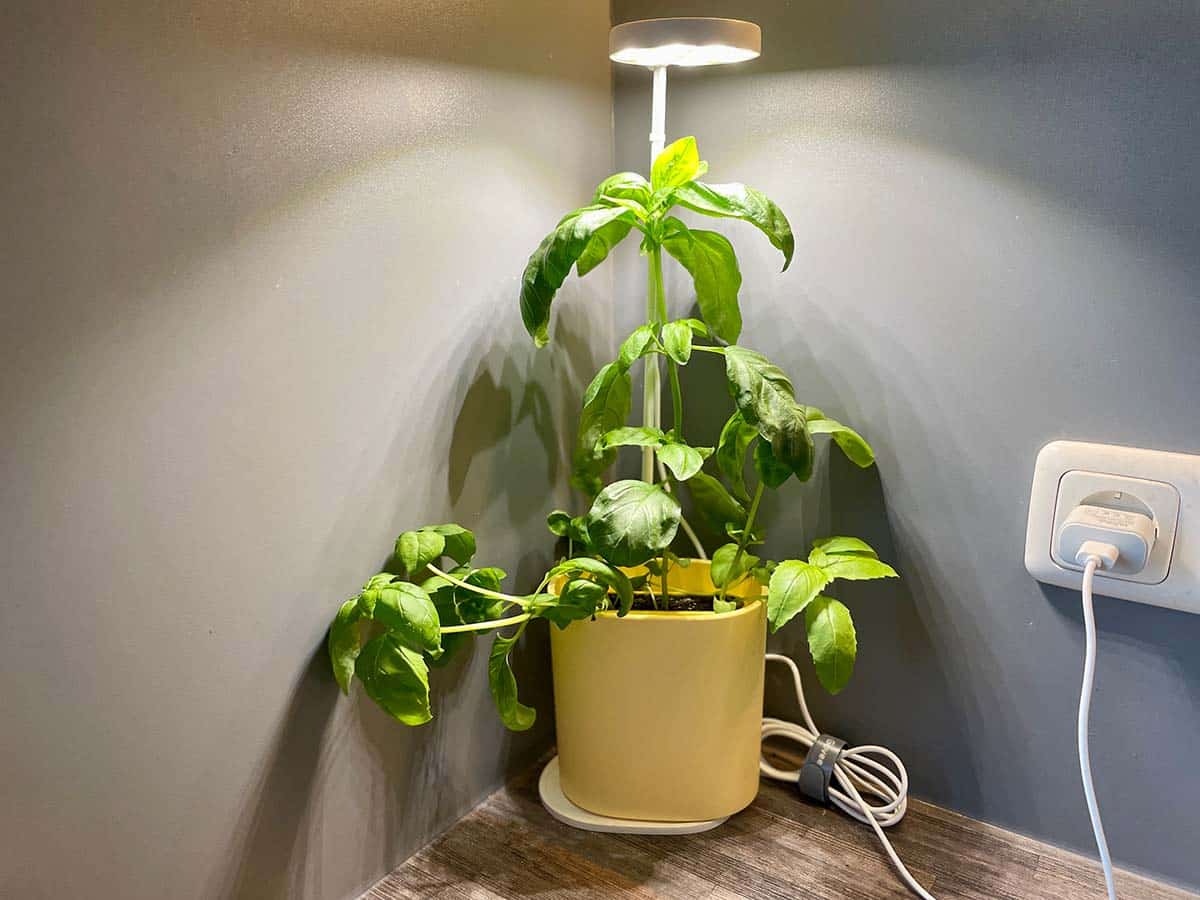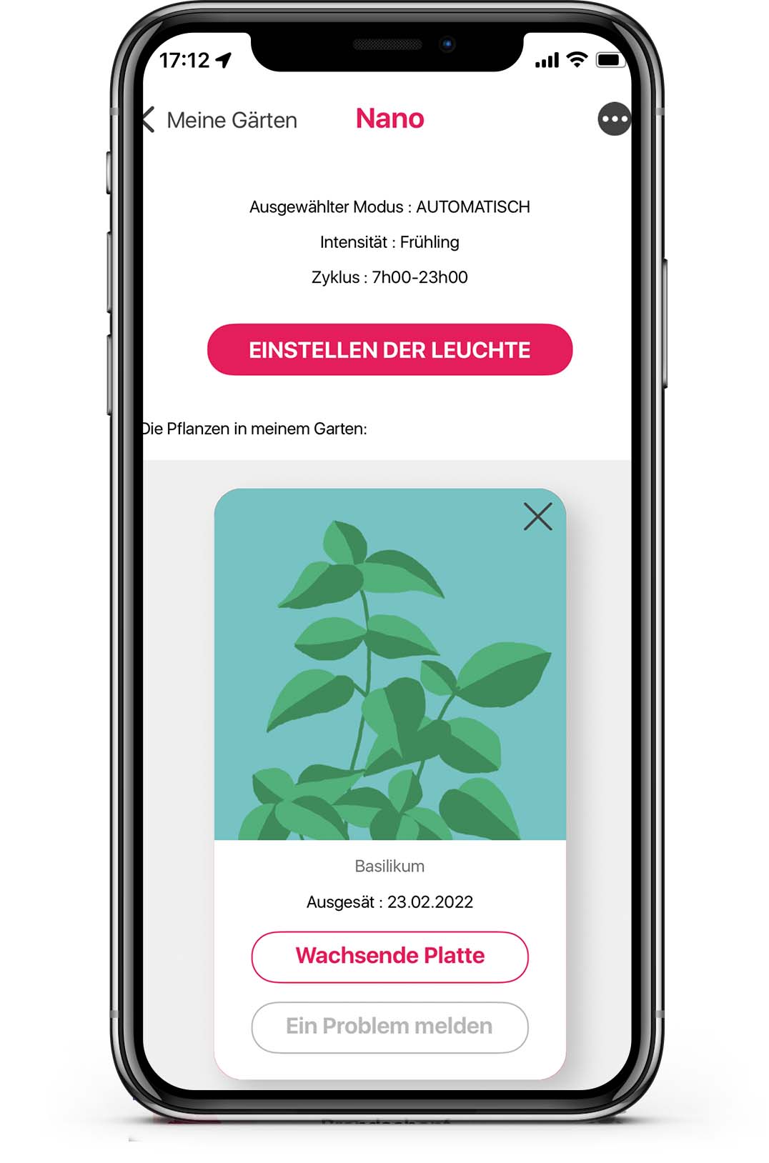Kommen wir zur smarten Komponente der Kräuterzucht. Ist die LED angeschlossen, so könnt ihr diese mit der zugehörigen App verbinden. Hier könnt ihr eingeben, welche Kräuter ihr eingepflanzt habt und an welchem Tag die „Aussaat“ stattfand. Nun bekommt ihr einige nützliche Hinweise zu eurer Pflanze und könnt gleichzeitig die Beleuchtung in den Automatikmodus schalten, sodass die Beleuchtungsphasen selbstständig, an die Pflanze angepasst ablaufen.