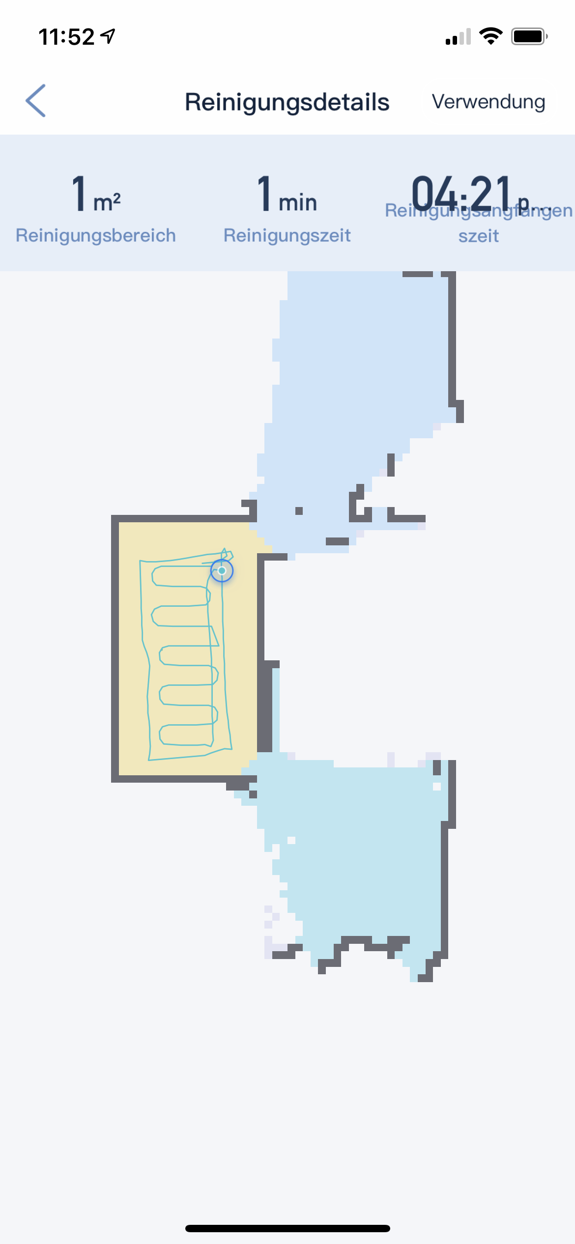 - Ihr seht nun die Karte der damaligen Reinigung. Klickt oben rechts auf „Verwendung“.