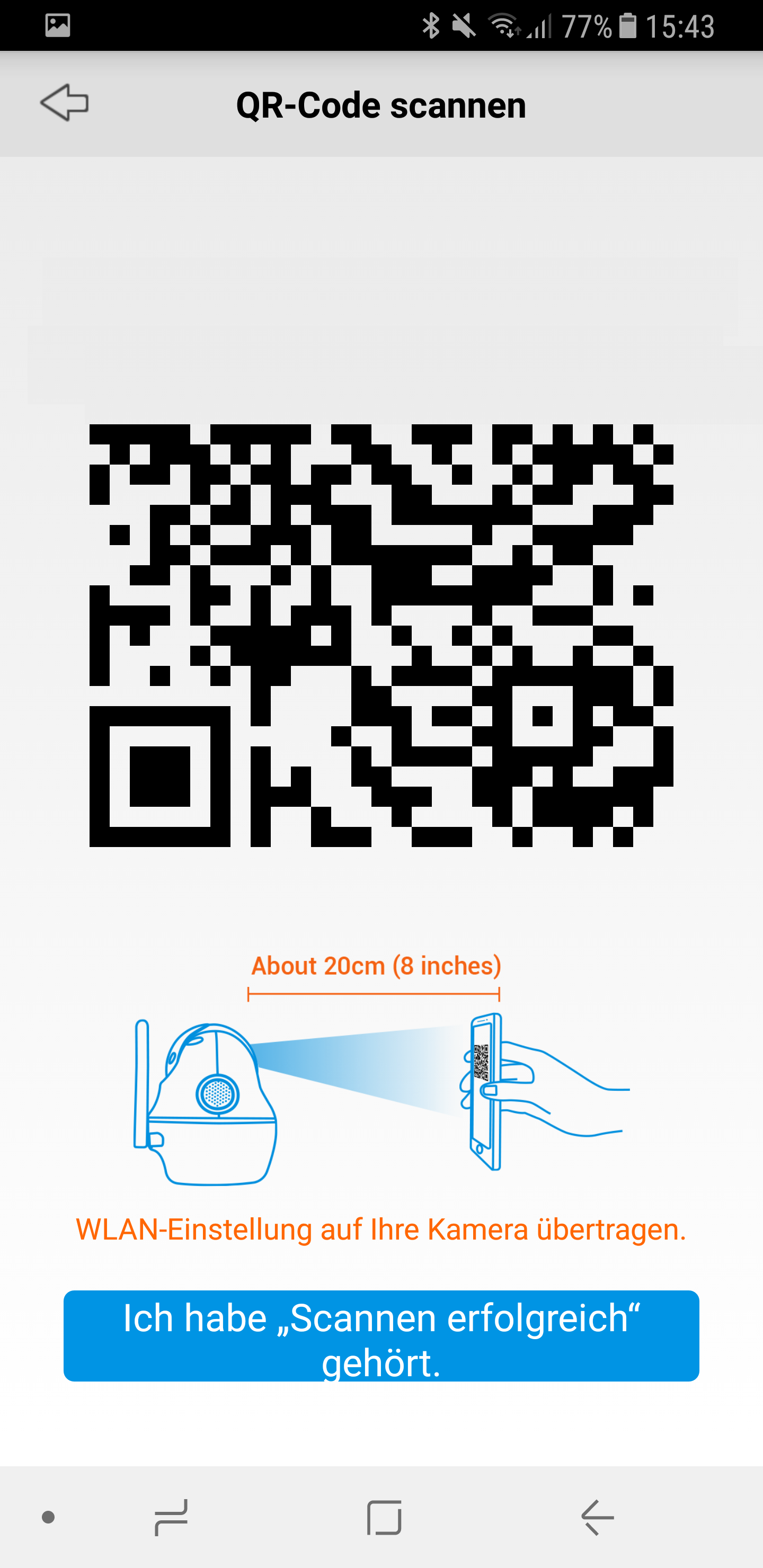 - Haltet nun den auf dem Bildschirm erscheinenden QR-Code vor die Reolink Argus Kamera. Nach erfolgreichem Scan Vorgang bestätigt ihr dies wieder mit einem Klick auf den Button.