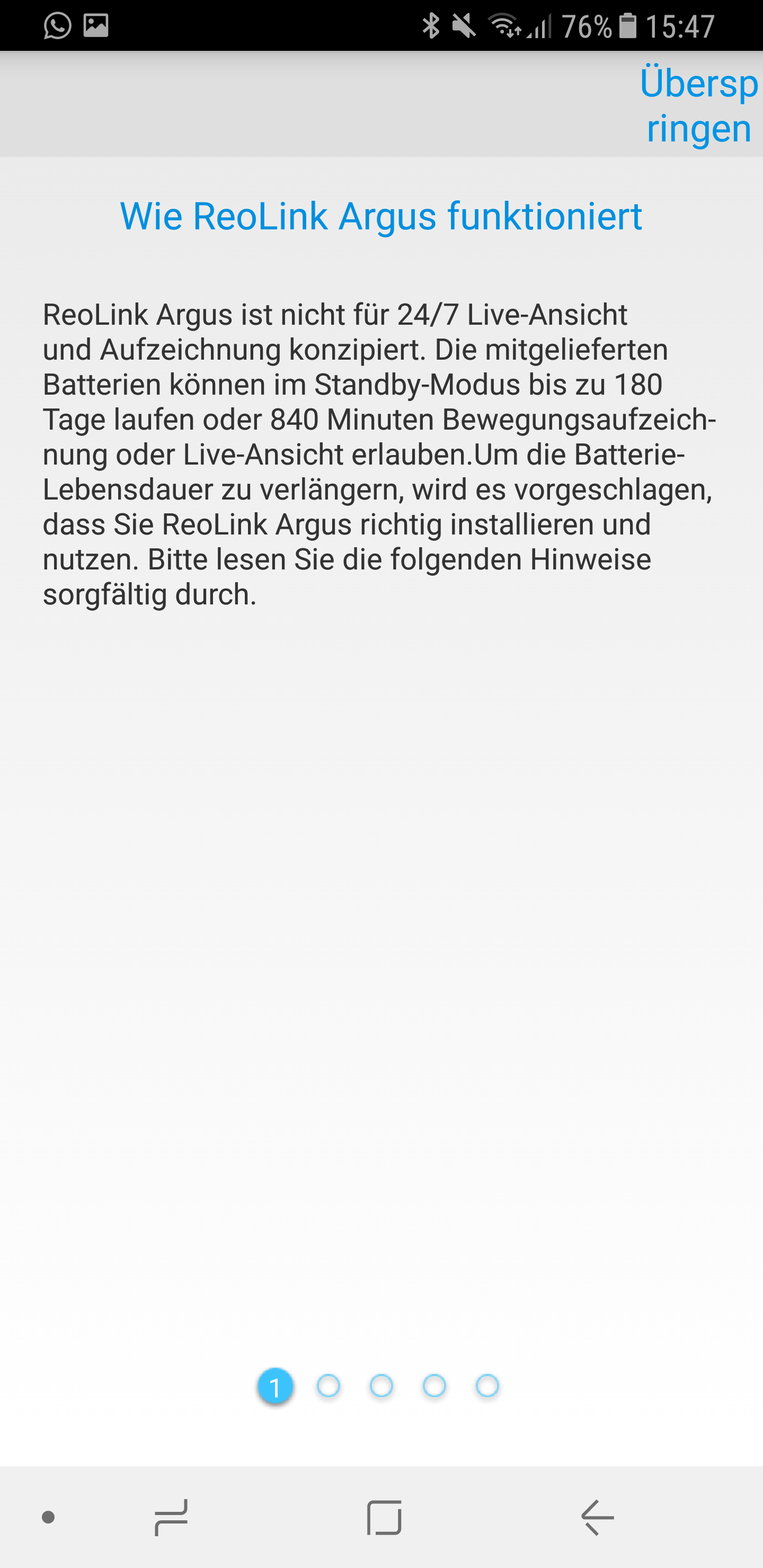 - Zum Schluss werdet ihr auf den Startbildschirm geleitet und seht direkt das Live Bild der Reolink Argus Kamera.
