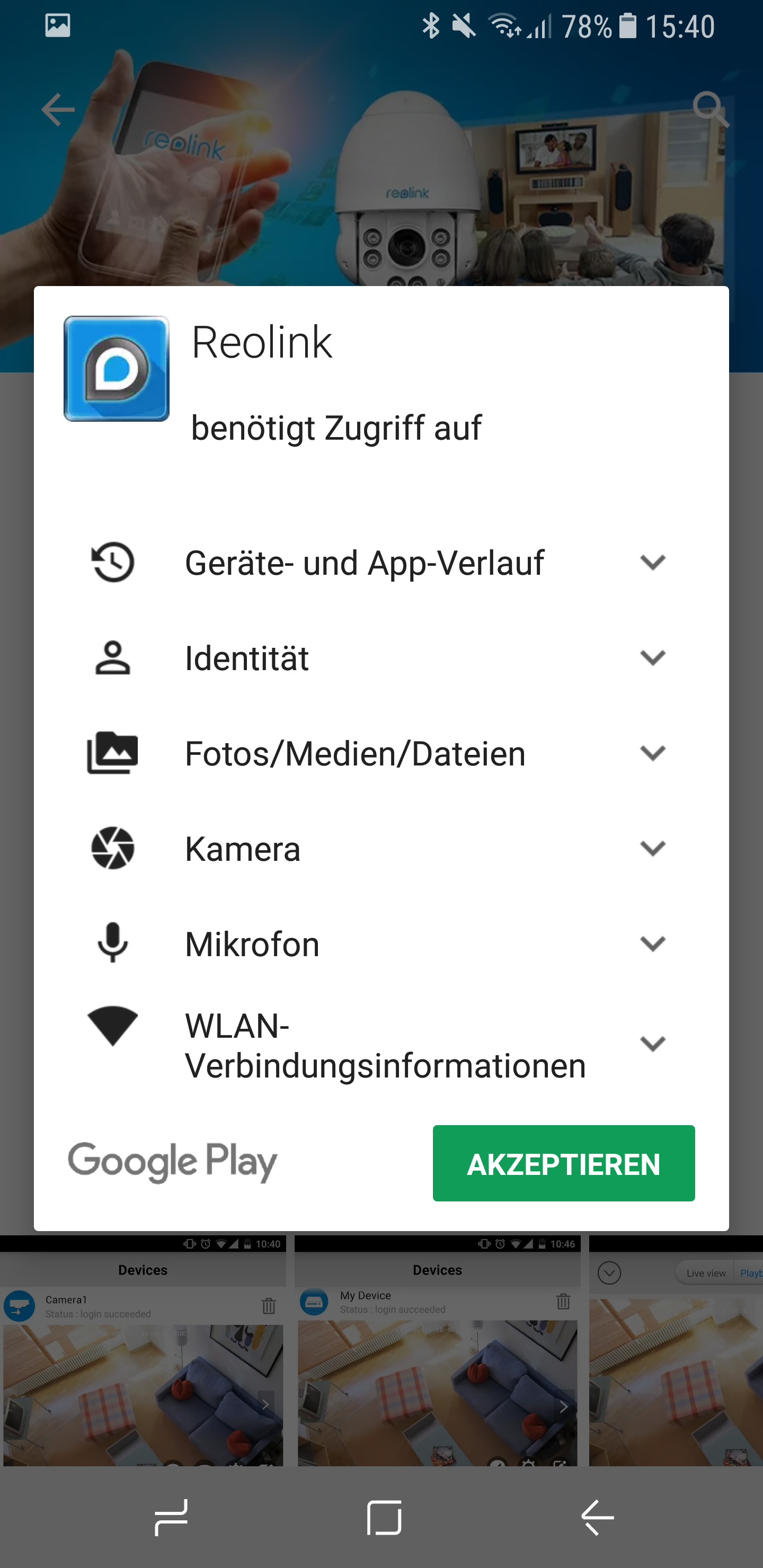 - Akzeptiert und bestätigt die benötigten Zugriffsrechte.
