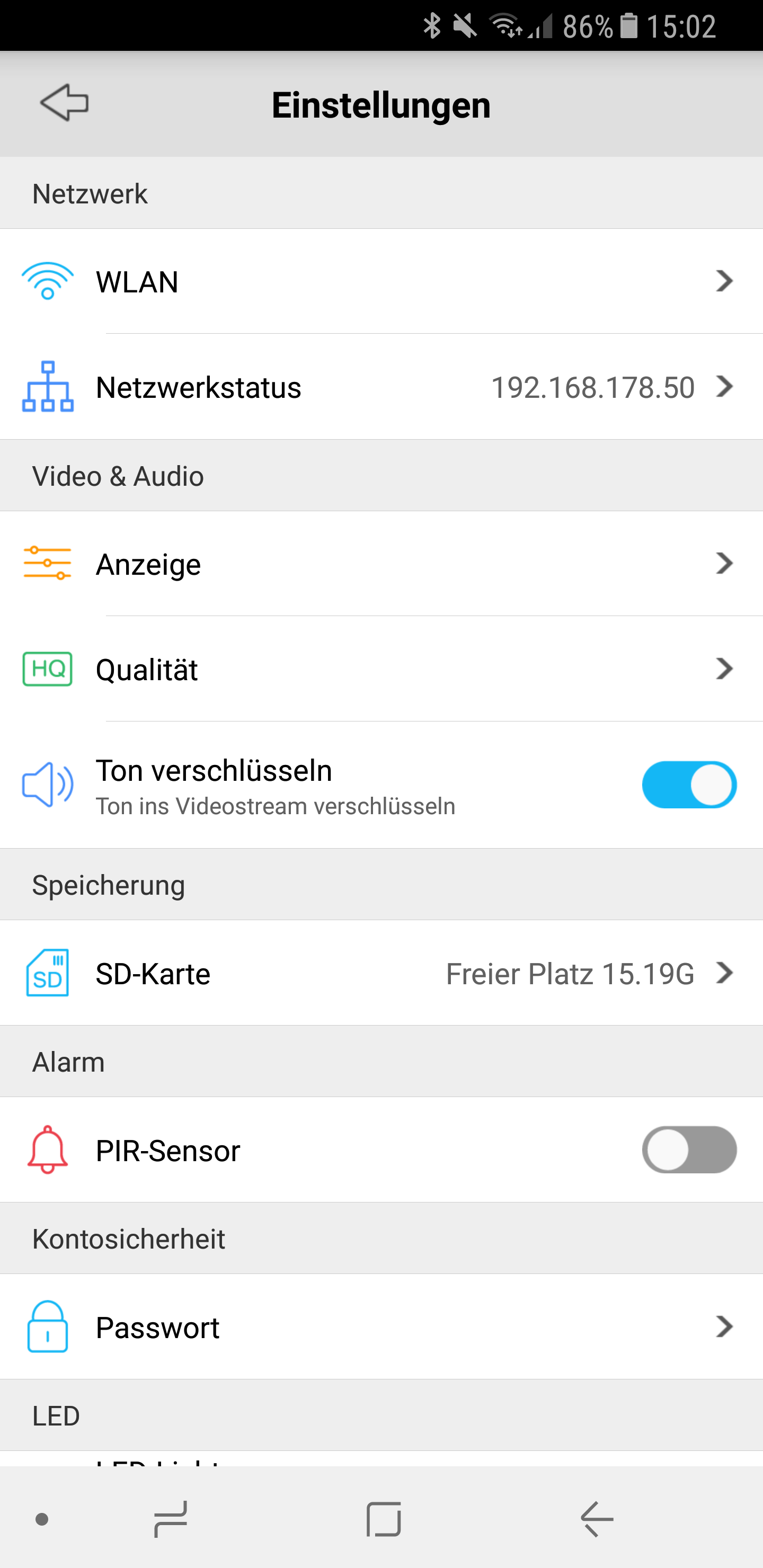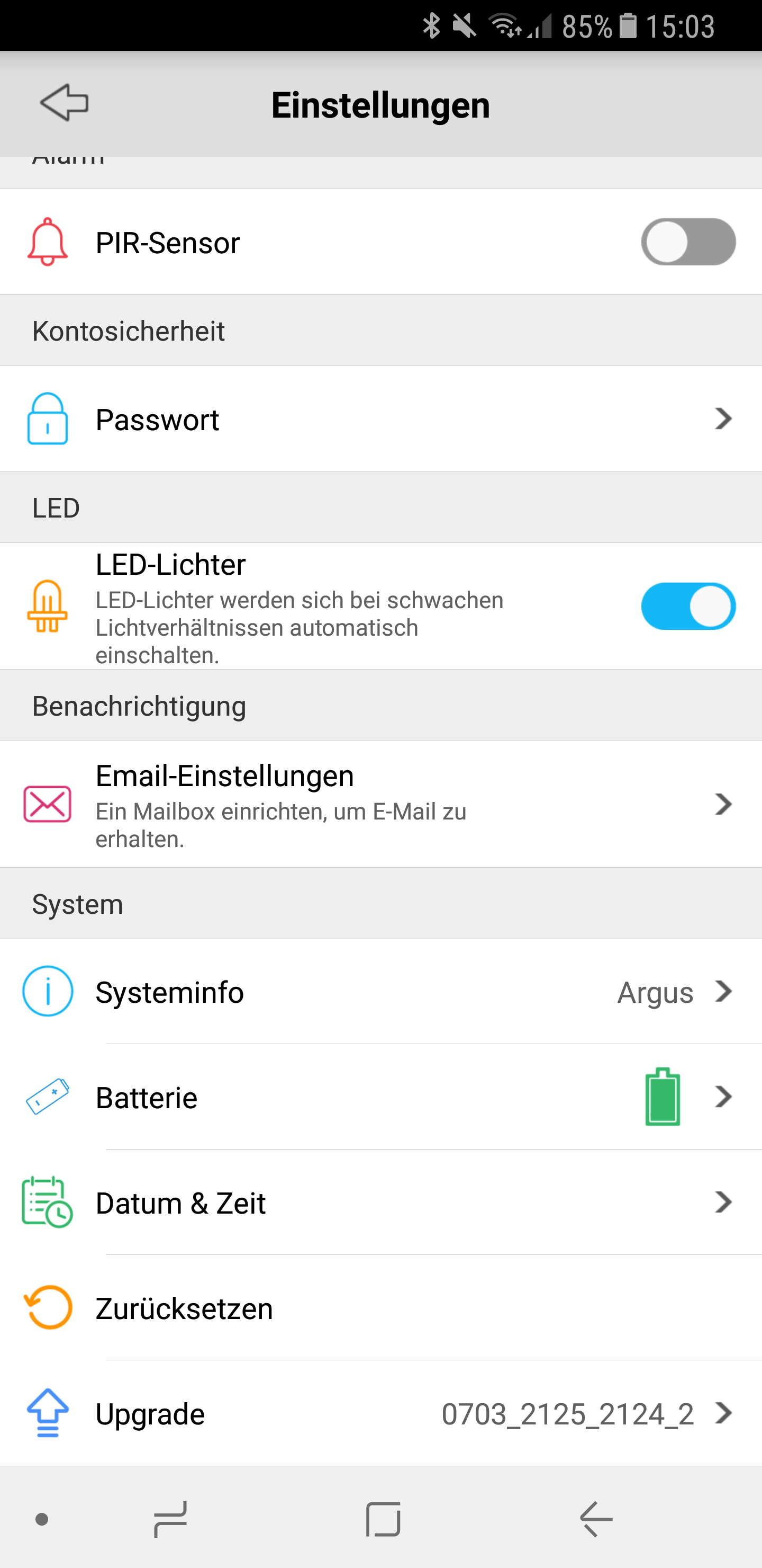 Erwähnt sollte aber sein, dass ich weder Push Benachrichtigungen noch den PIR Sensor angeschaltet habe. Dies macht für mich einfach noch keinen Sinn. Schön wäre es, wenn es die Möglichkeit gäbe, diesen standortbezogen automatisch schalten zu lassen. Generell eine Einbindung in ein Smarthome System wie ioBroker wäre für die Zukunft auch wünschenswert. Solange das nicht zu realisieren ist, ist für meinen Single-Haushalt der Stromverbrauch eines ständig eingeschalteten PIR Sensors einfach zu hoch.
