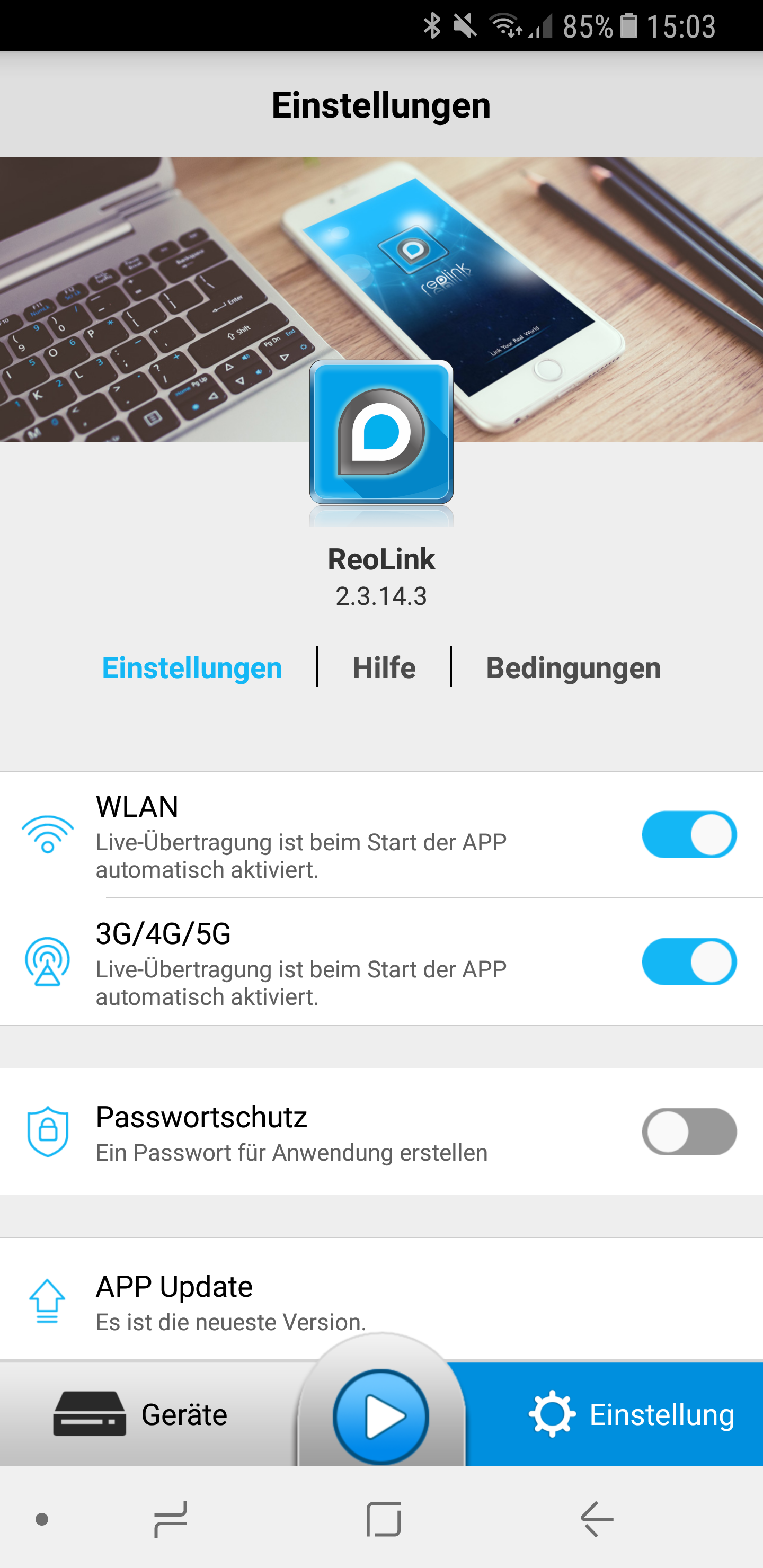 Wie das Ganze dann auf dem Smartphone bzw. in der App aussieht, zeige ich euch auf den folgenden Bildern. Dazu habe ich von den meist genutzten Funktionen Screenshots erstellt, die ich euch nun etwas näher bringe. Nebenbei sei erwähnt, dass die Desktop Version, die man bei Reolink auf der Seite findet nicht mit der Argus kompatibel ist.