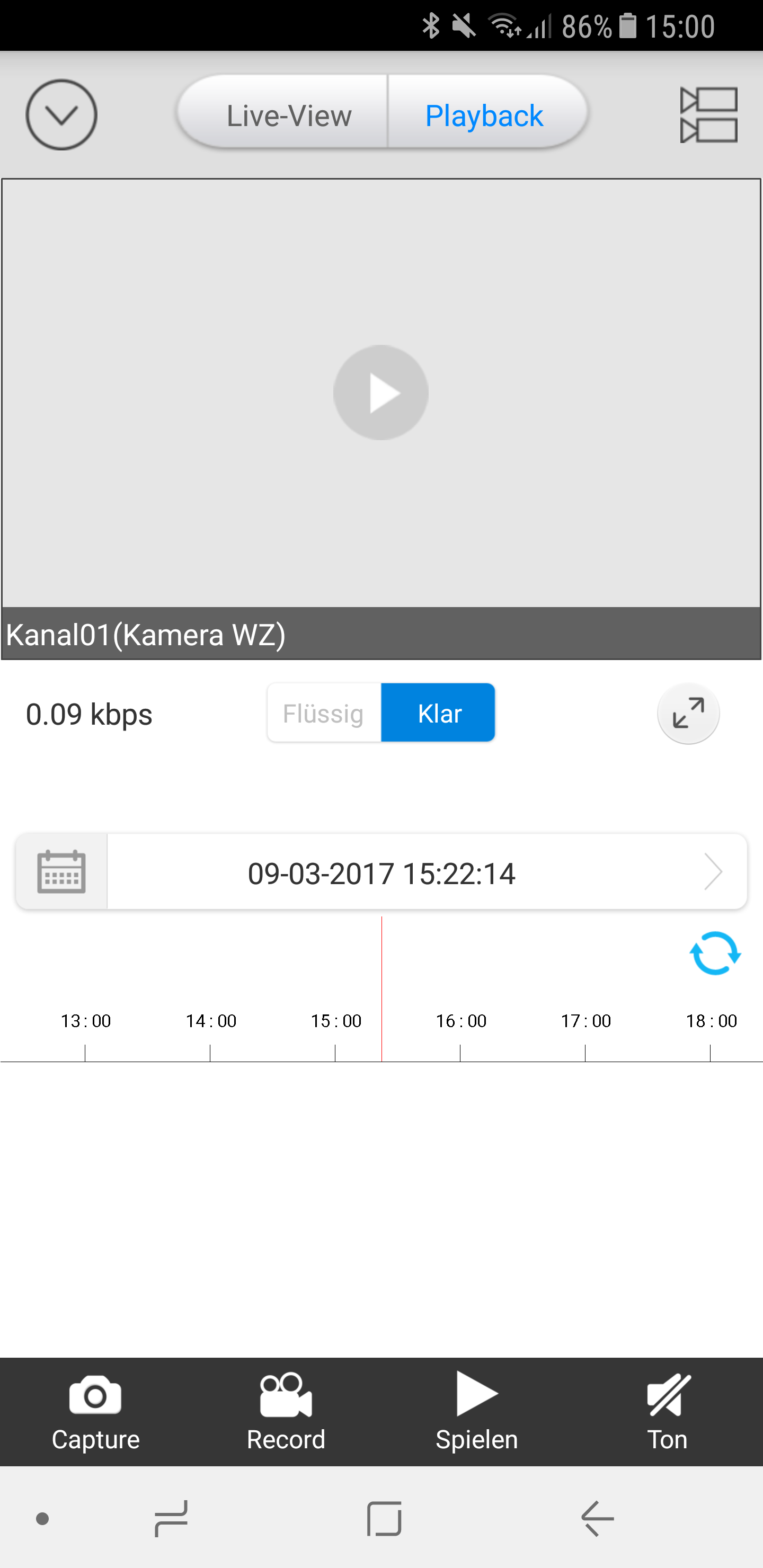 - Dieses Fenster bekommt ihr zu sehen, wenn ihr oben in der Leiste den Punkt „Playback“ auswählt. Hier könnt ihr dann eure Videoaufnahmen ansehen, die von der Kamera durch auslösen der PIR Sensors aufgenommen wurden.